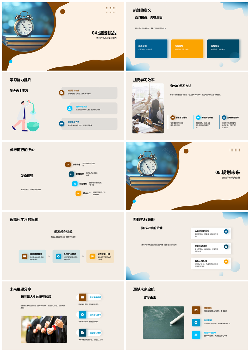 这是一张初三学习能力提升学科复习规划时间管理PPT模板,包含初三、学习能力、提升、学科、复习、规划、时间管理等主题内容,也可用作初三学习能力提升学科复习规划时间管理、学科复习规划时间管理、初三学习能力提升学科复习、初三学习能力提升复习、学习能力提升学科复习规划、学科复习规划时间管理、复习规划时间管理、初三学习能力提升、学习能力提升学科复习、学科复习规划、初三学科复习规划、复习规划时间管理、学习能力提升、学科复习、复习规划、规划时间管理、初三复习、初三学习能力、学科规划时间管理、提升学科复习等PPT场景使用。 风云办公提供的初三学习能力提升学科复习规划时间管理PPT模板,下载格式为pptx,一共28页,作品中文字及图均可以修改和编辑,图片更改请在作品中右键图片并更换,文字修改请直接点击文字进行修改。