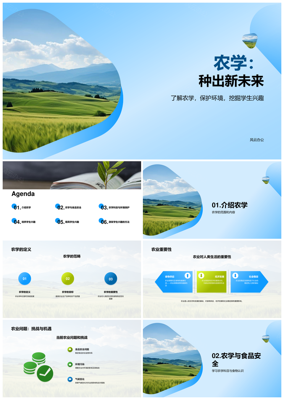 风云办公提供的农学师生麦田探食物育新趣PPT模板,下载格式为pptx,一共25页,作品中文字及图均可以修改和编辑,图片更改请在作品中右键图片并更换,文字修改请直接点击文字进行修改。