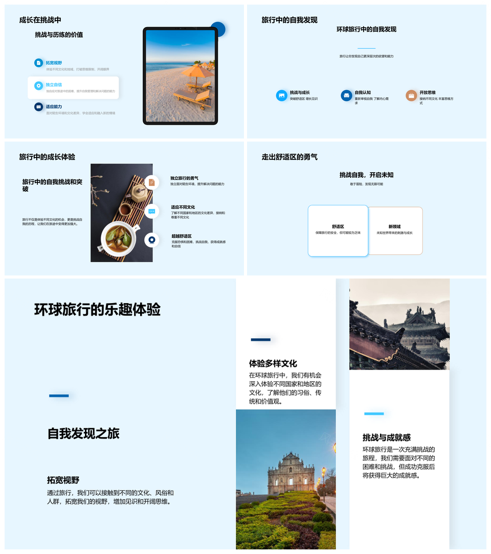 这是一张环球旅行策划师规划预算文化相册PPT模板,包含环球旅行、策划师、规划、预算、文化、相册等主题内容,也可用作环球旅行策划师规划预算、策划师规划预算文化、规划预算文化相册、环球旅行规划预算文化、旅行策划师规划预算、策划师规划文化相册、环球旅行文化相册、环球策划师规划预算、旅行规划预算文化、策划师预算文化相册、环球规划预算文化、旅行规划文化相册、策划师文化相册、规划预算相册、环球文化相册等PPT场景使用。