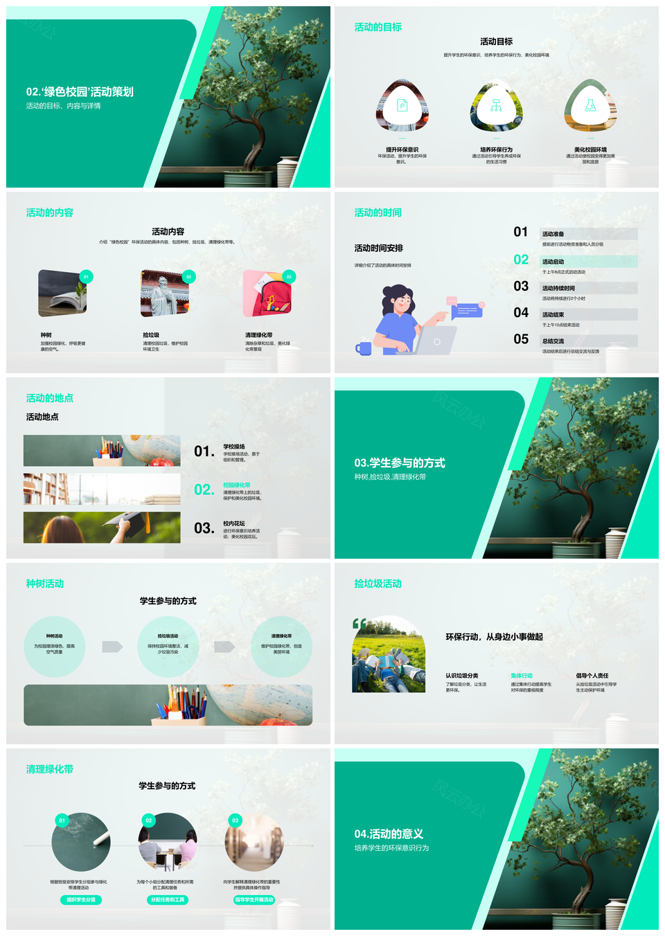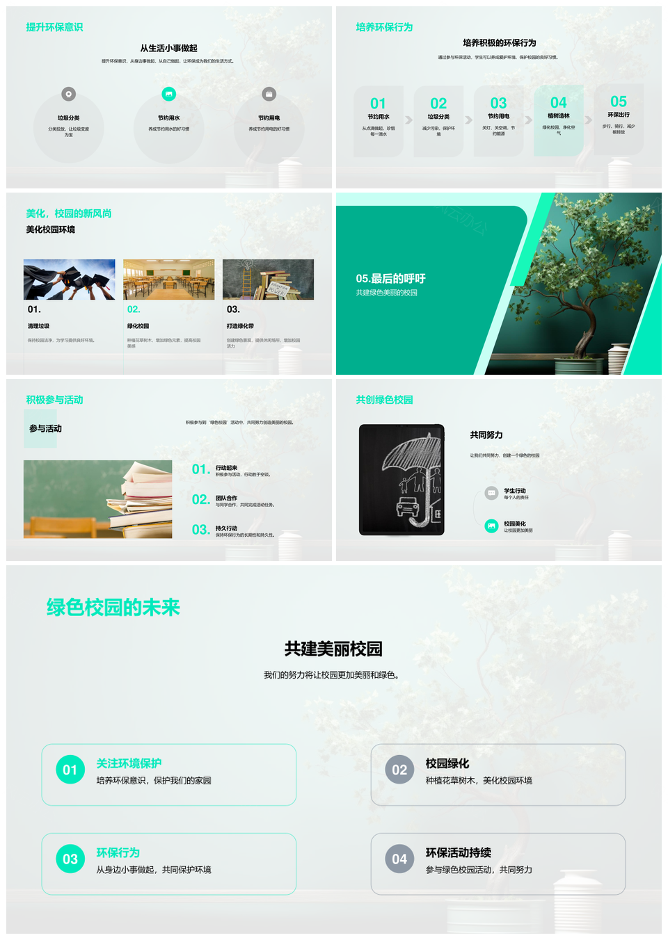 这是一张师生种树共建绿色校园环保教育PPT模板,包含师生、种树、共建、绿色校园、环保教育等主题内容,也可用作师生共建绿色校园、种树共建绿色校园、绿色校园环保教育、共建绿色校园环保、绿色校园环保教育、师生共建环保教育、种树共建绿色环保、师生种树共建绿色、共建绿色环保教育、师生种树环保教育、绿色校园环保、师生共建校园、种树共建环保、环保教育校园、绿色环保教育等PPT场景使用。