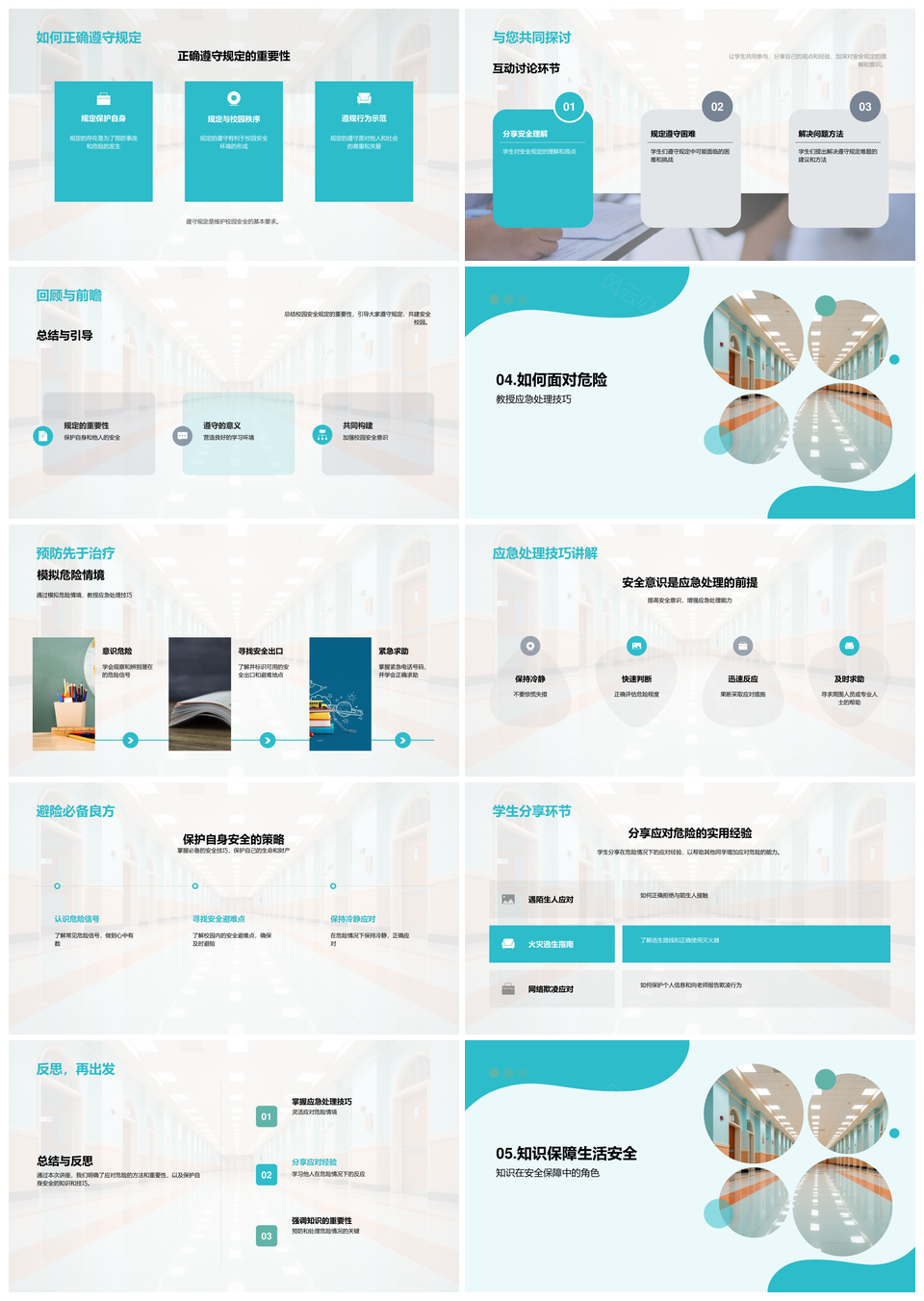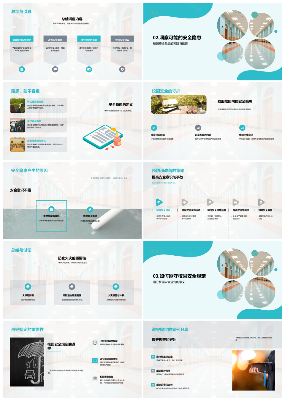 这是一张校园安全教育遵守规定预防隐患应急防护PPT模板,包含校园、安全教育、遵守、规定、预防、隐患、应急、防护等主题内容,也可用作校园安全教育遵守规定、遵守规定预防隐患应急、校园安全应急防护教育、预防隐患应急防护措施、安全教育遵守规定制度、校园安全预防隐患检查、应急防护遵守规定操作、安全教育应急防护演练、校园安全教育宣传、遵守规定预防措施、预防隐患应急处理、安全应急防护设备、教育遵守规定要求、应急防护教育训练、预防隐患安全教育等PPT场景使用。 风云办公提供的校园安全教育遵守规定预防隐患应急防护PPT模板,下载格式为pptx,一共33页,作品中文字及图均可以修改和编辑,图片更改请在作品中右键图片并更换,文字修改请直接点击文字进行修改。