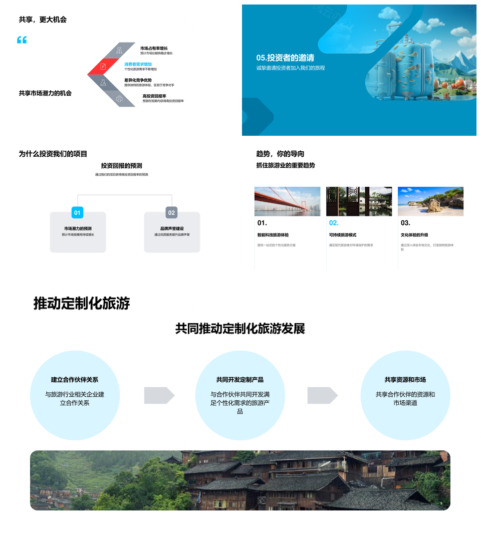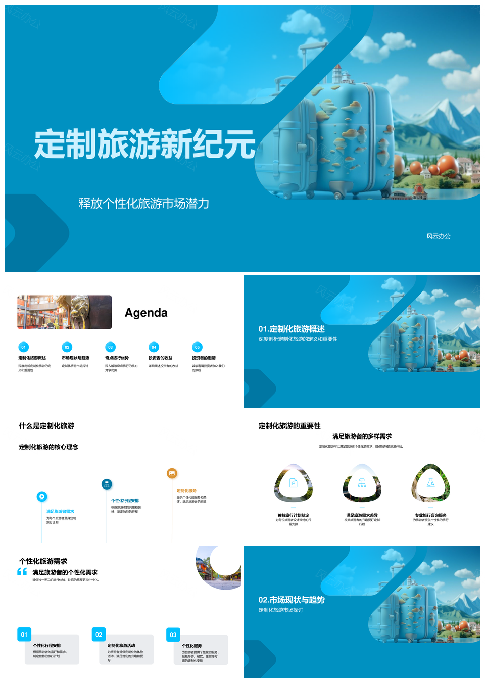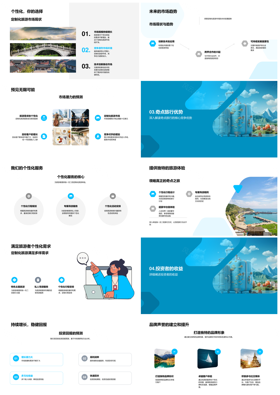 风云办公提供的奇点定制旅游新纪元趋势投资者高收益PPT模板,下载格式为pptx,一共23页,作品中文字及图均可以修改和编辑,图片更改请在作品中右键图片并更换,文字修改请直接点击文字进行修改。