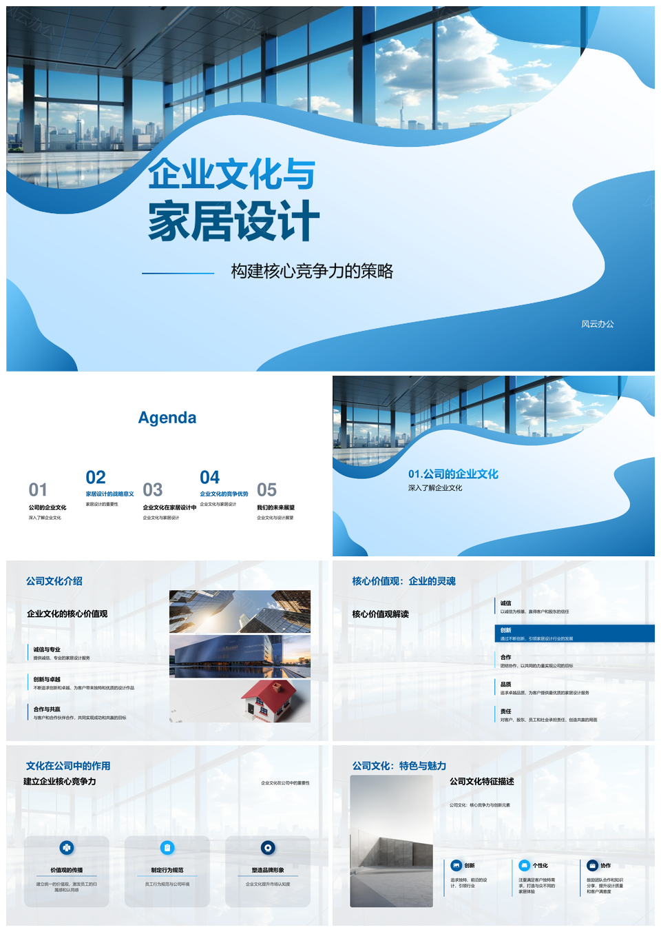风云办公提供的企业文化家居设计核心竞争战略增长PPT模板,下载格式为pptx,一共33页,作品中文字及图均可以修改和编辑,图片更改请在作品中右键图片并更换,文字修改请直接点击文字进行修改。