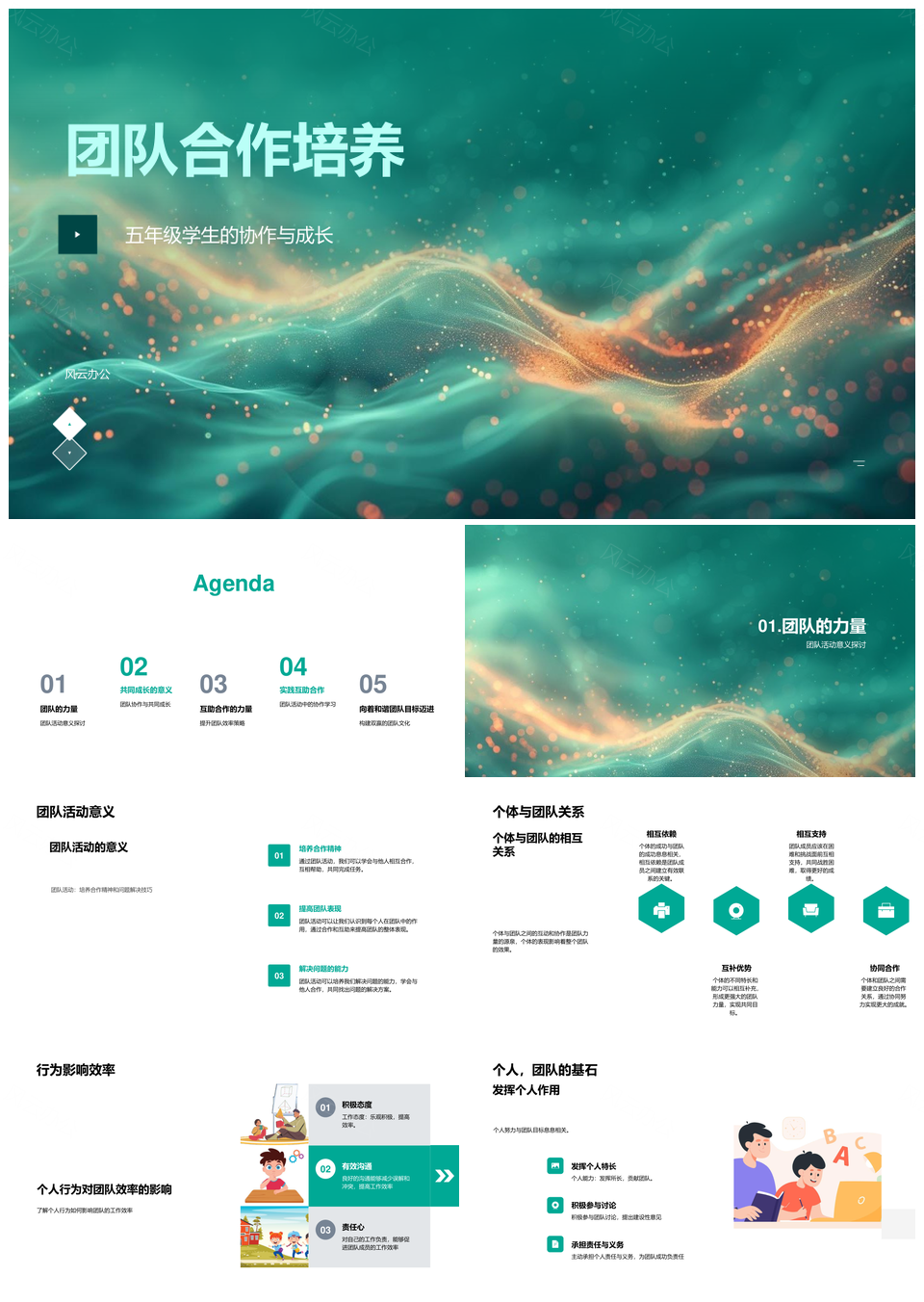 风云办公提供的五年级团队协作互助共成长PPT模板,下载格式为pptx,一共33页,作品中文字及图均可以修改和编辑,图片更改请在作品中右键图片并更换,文字修改请直接点击文字进行修改。