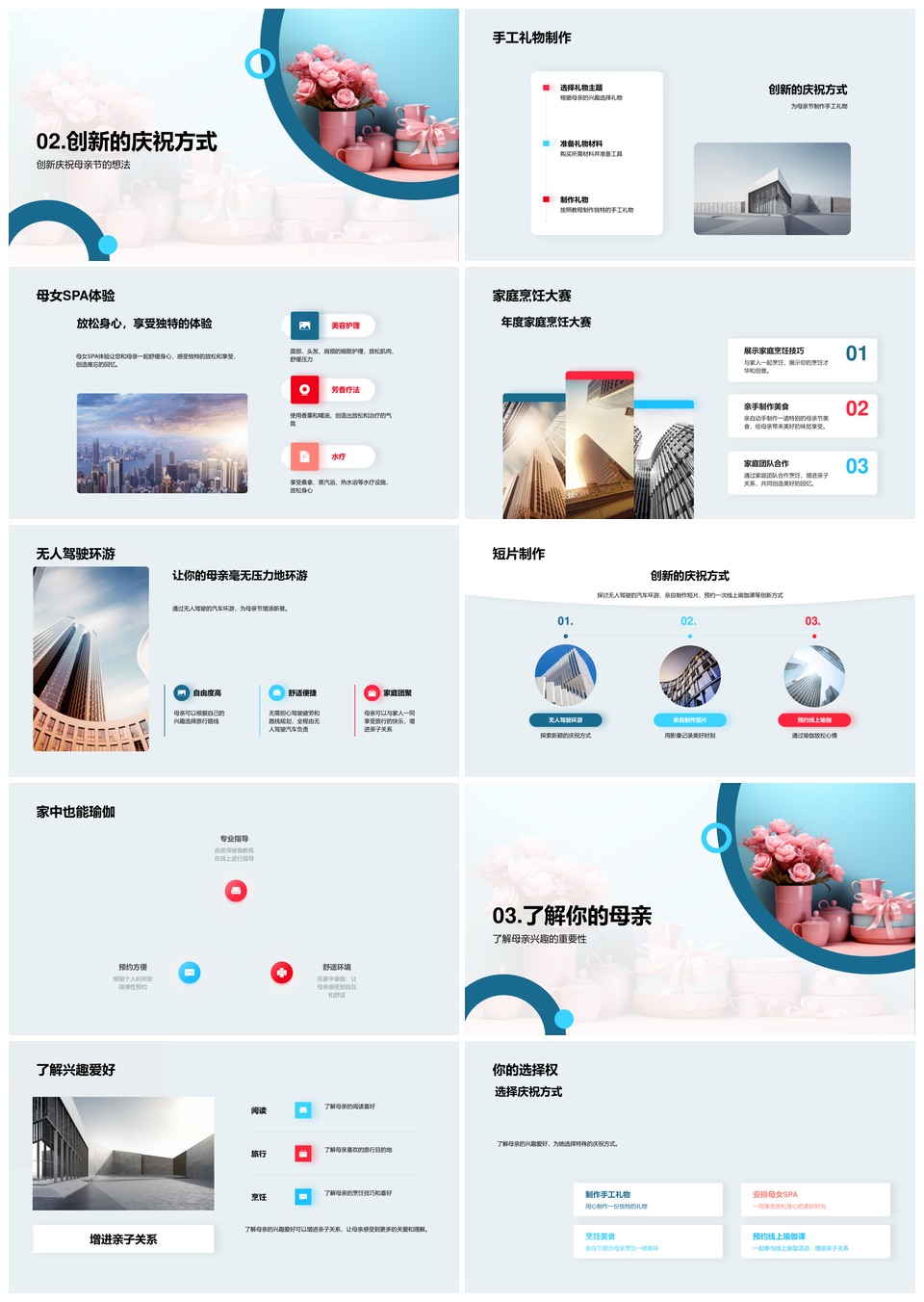 风云办公提供的母亲节创新手工SPA烹饪自驾惊喜乐PPT模板,下载格式为pptx,一共27页,作品中文字及图均可以修改和编辑,图片更改请在作品中右键图片并更换,文字修改请直接点击文字进行修改。