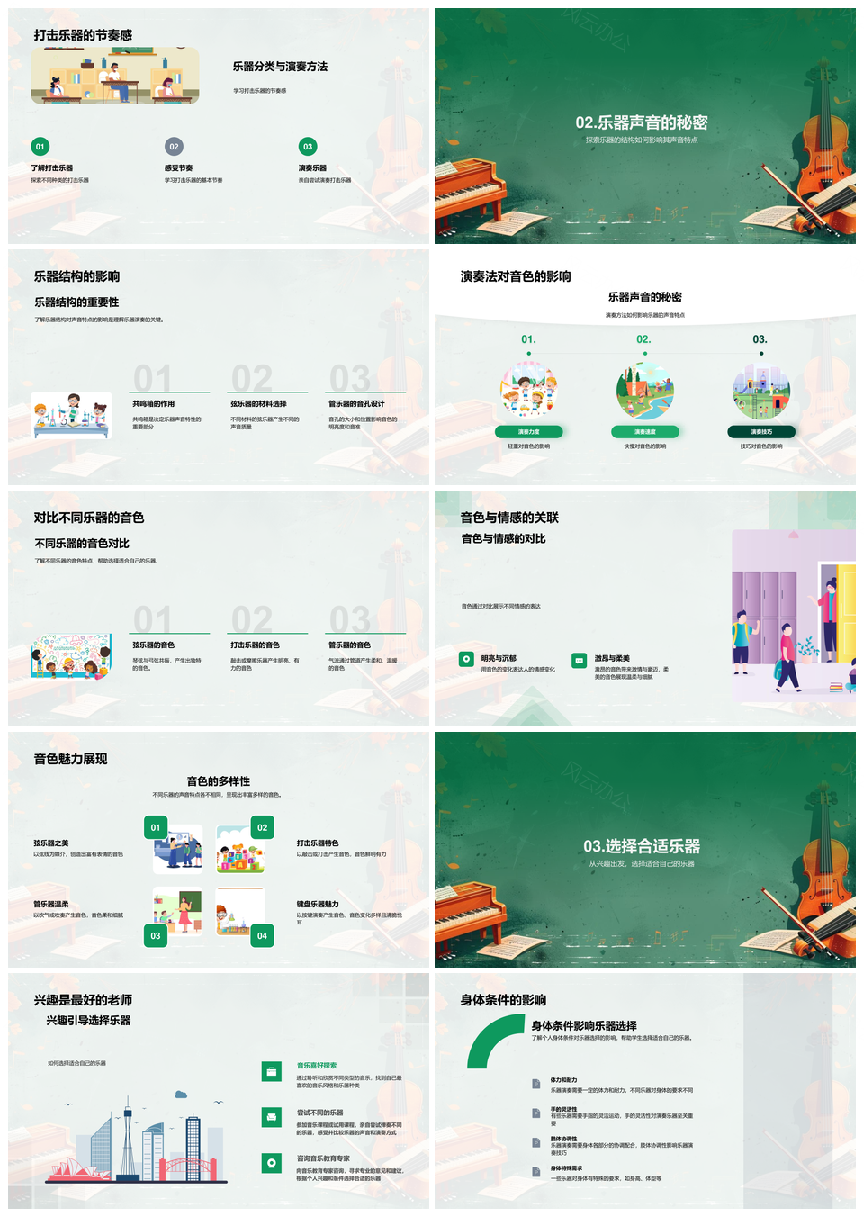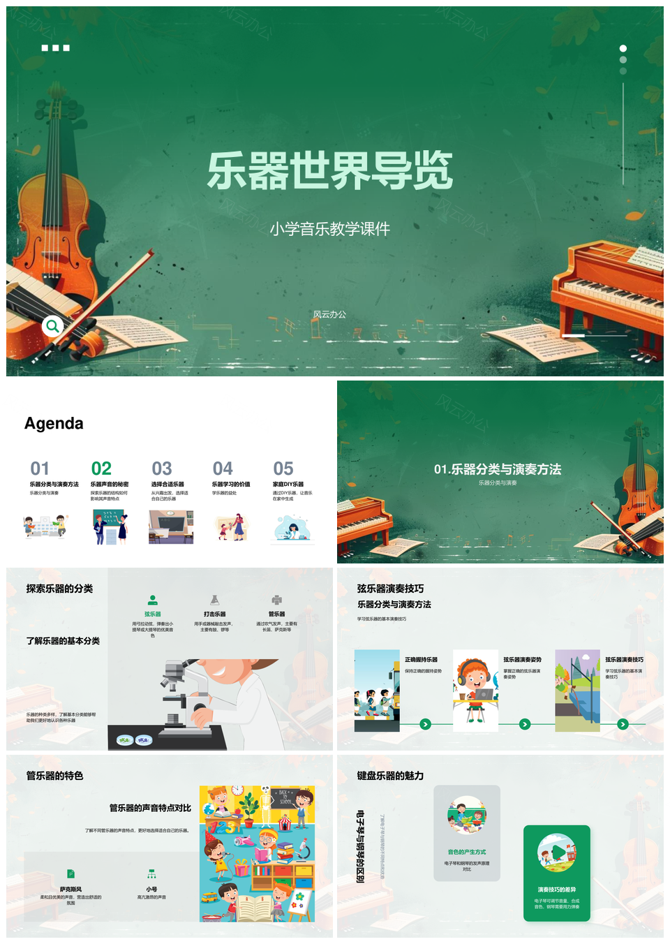小学音乐弦管键盘乐器演奏与声学教学PPT模板推荐