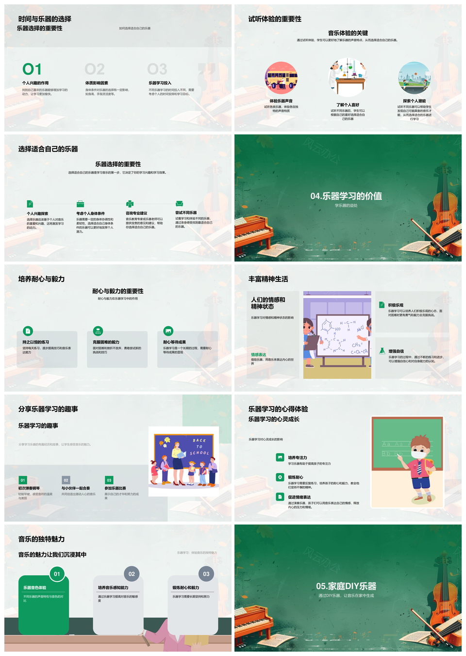 绿色清新微粒体音乐艺术钢琴演奏培训教育教学动态PPT模板