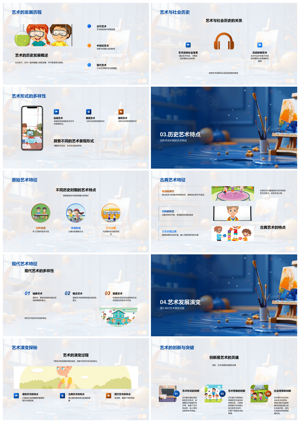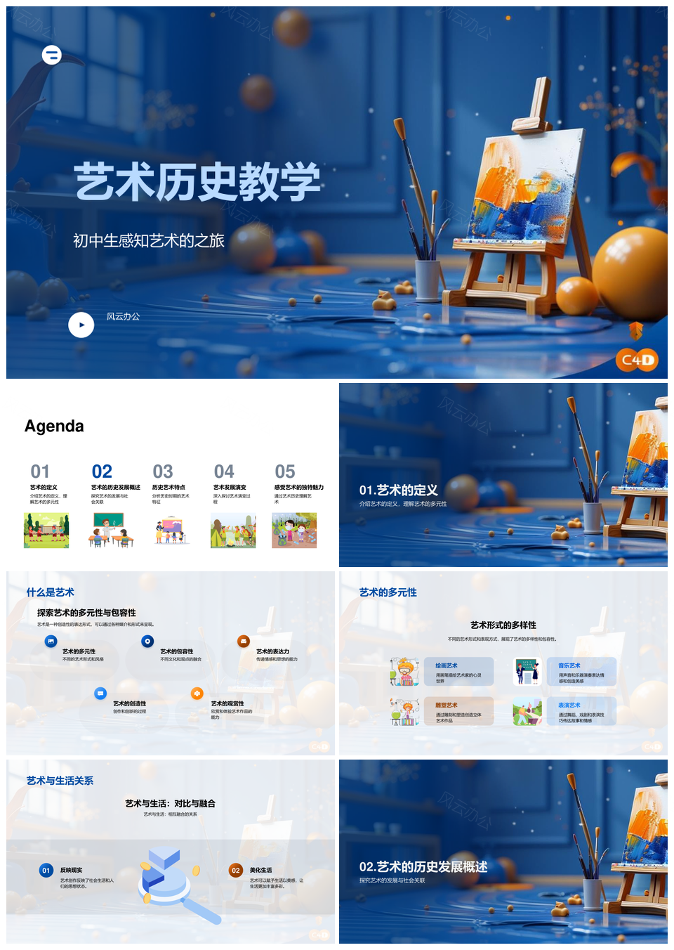 风云办公提供的艺术历史多元形式发展历程教学PPT模板,下载格式为pptx,一共23页,作品中文字及图均可以修改和编辑,图片更改请在作品中右键图片并更换,文字修改请直接点击文字进行修改。