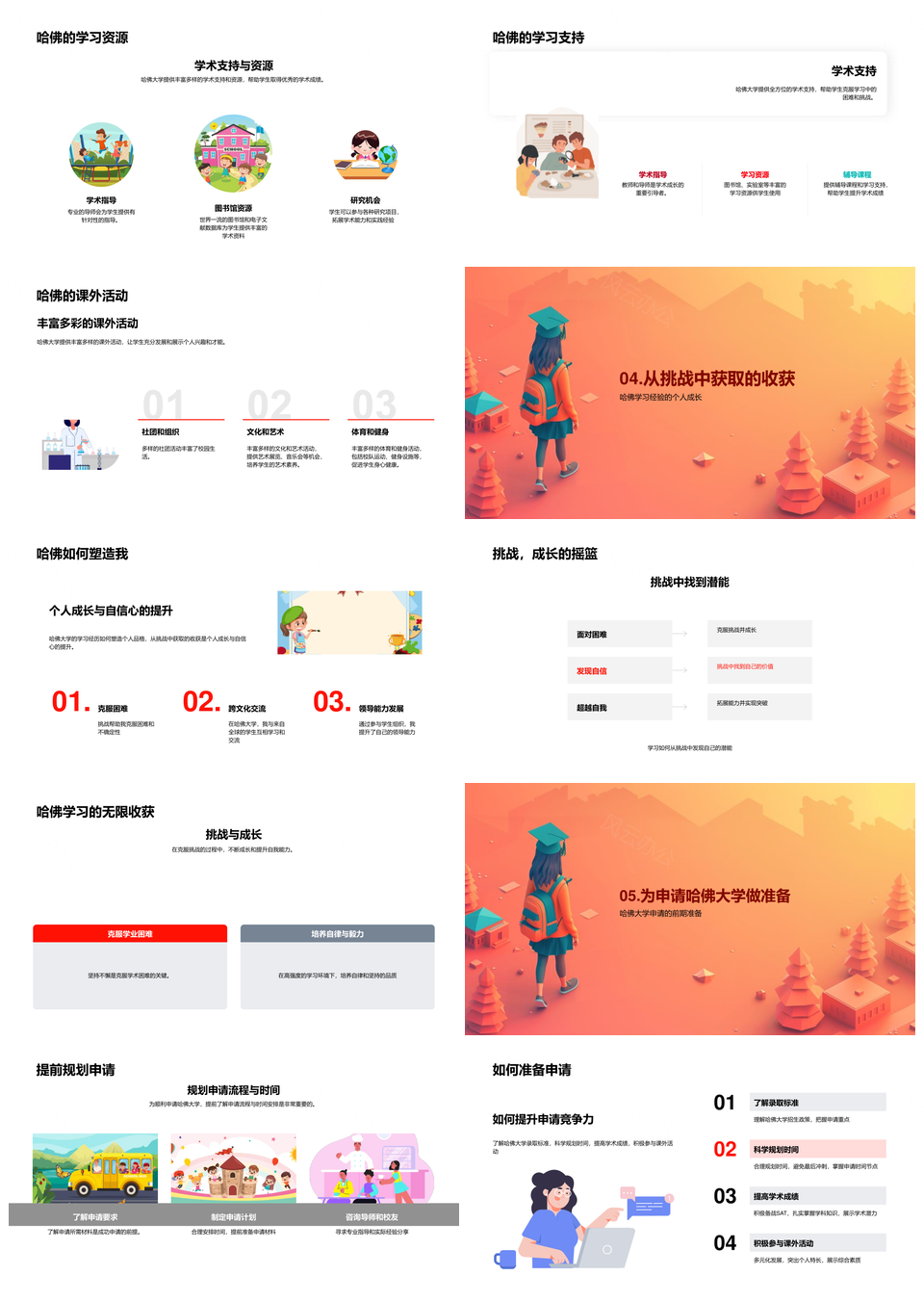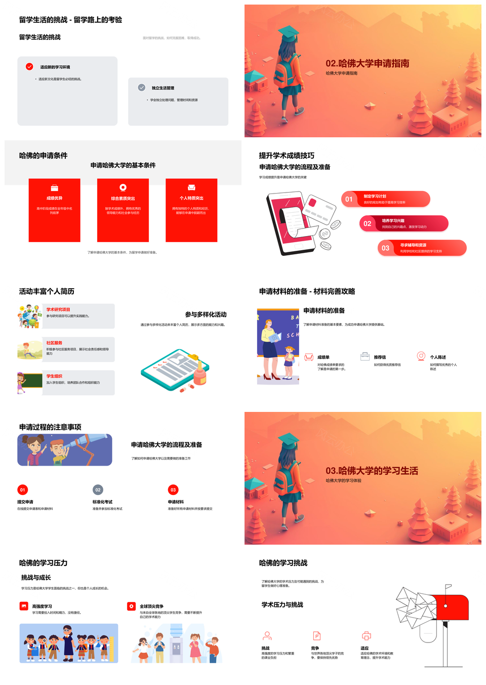 哈佛留学申请学术简历材料校园资源活动指南PPT模板推荐