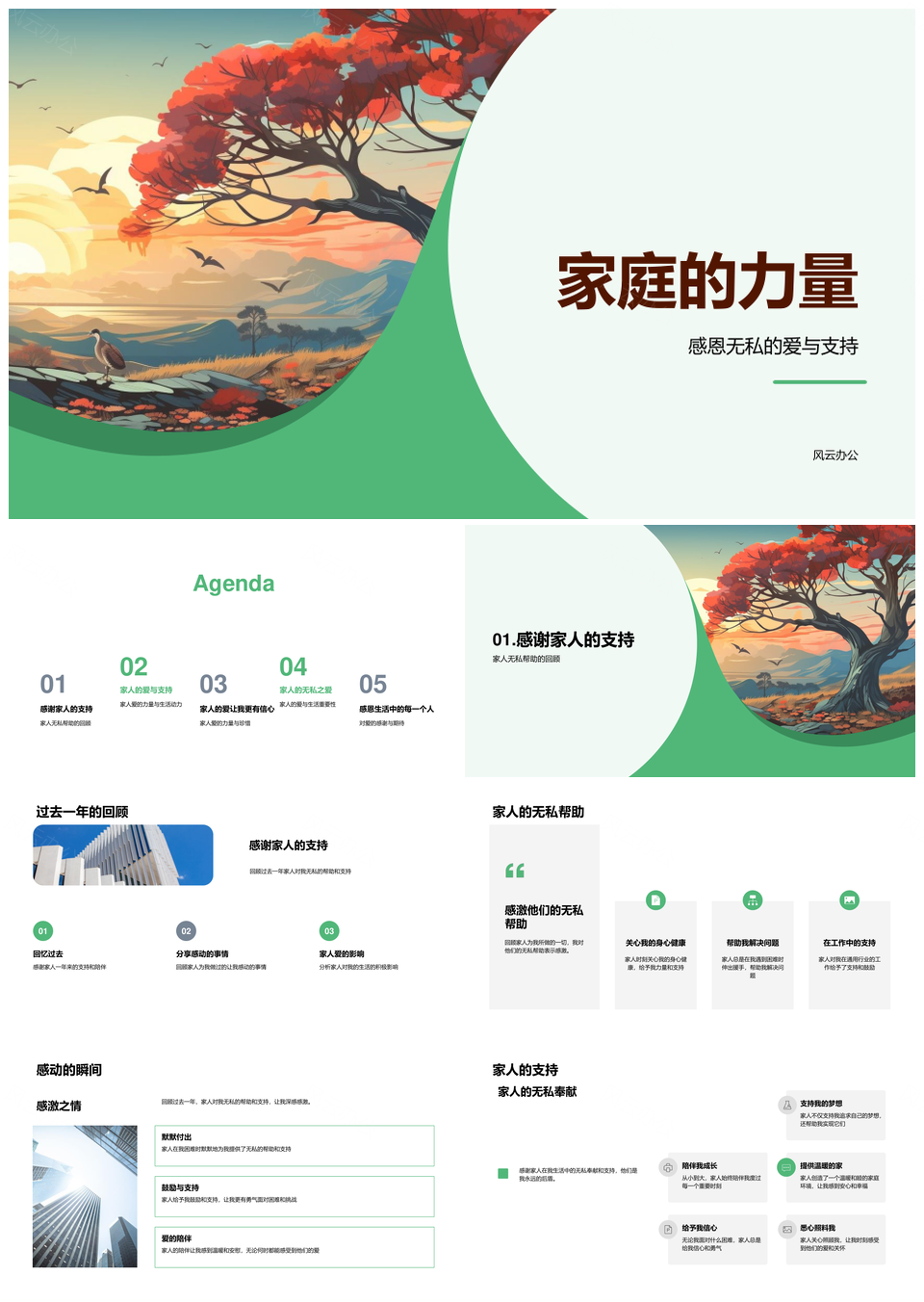 风云办公提供的家庭树聚感恩爱助生活动力惜家人PPT模板,下载格式为pptx,一共33页,作品中文字及图均可以修改和编辑,图片更改请在作品中右键图片并更换,文字修改请直接点击文字进行修改。