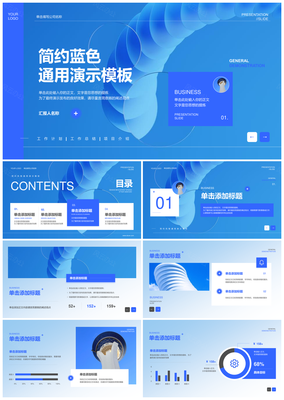 风云办公提供的简约蓝色商务高质感总结汇报PPT模板,下载格式为pptx,一共17页,作品中文字及图均可以修改和编辑,图片更改请在作品中右键图片并更换,文字修改请直接点击文字进行修改。