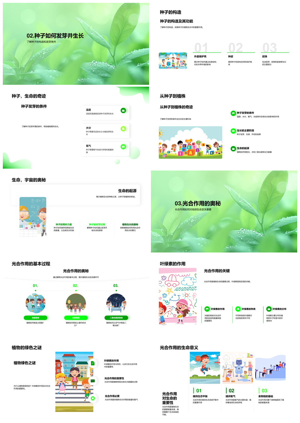 植物生长光合作用种子发芽生态保护解析PPT模板推荐