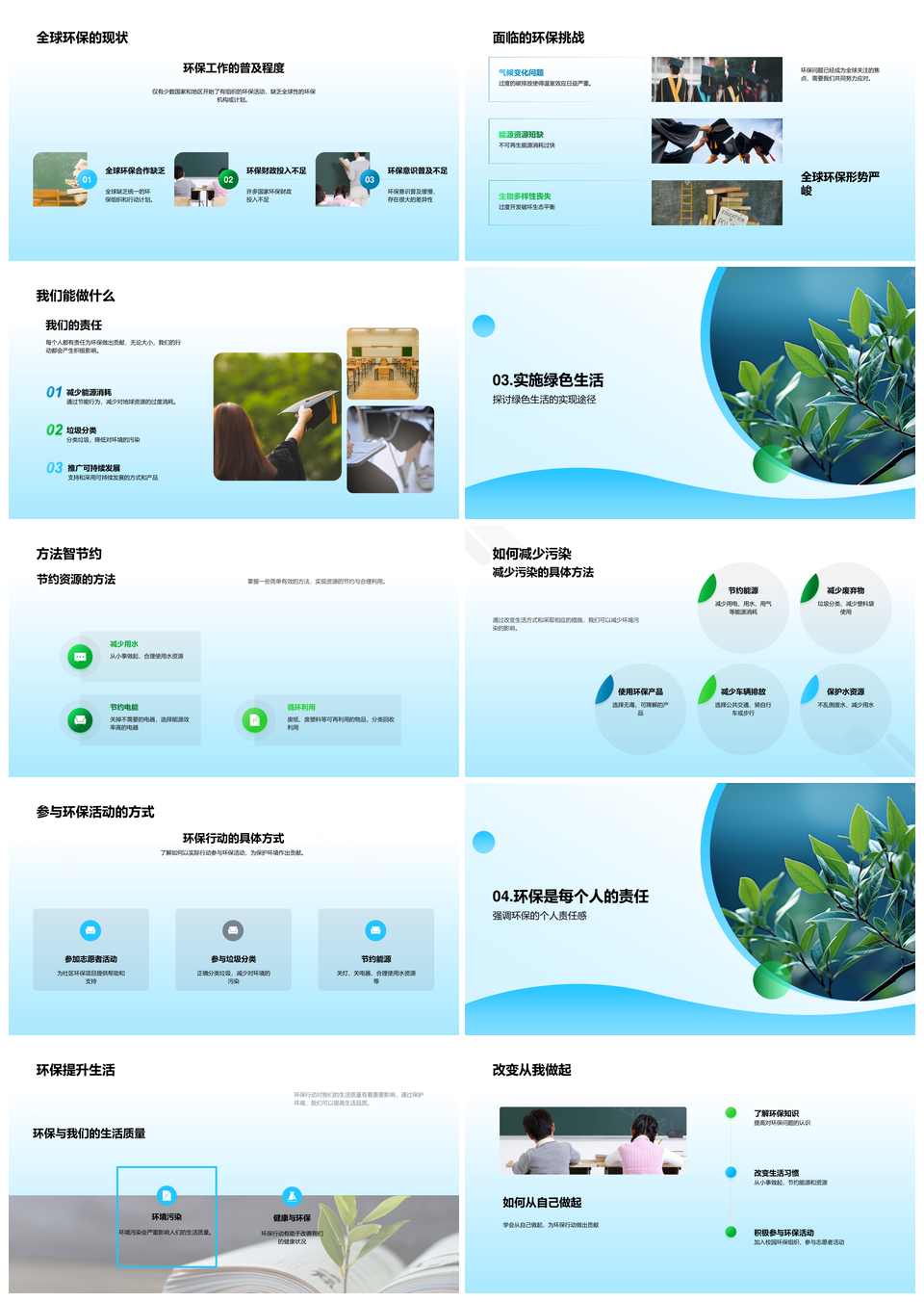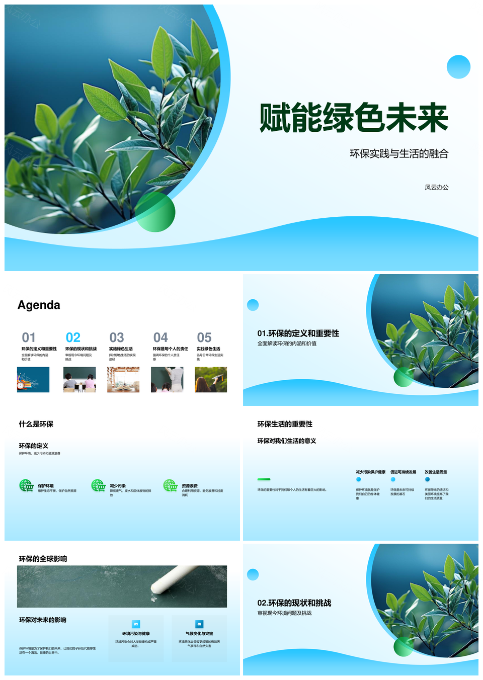 风云办公提供的赋能绿色未来环保实践教育PPT模板,下载格式为pptx,一共23页,作品中文字及图均可以修改和编辑,图片更改请在作品中右键图片并更换,文字修改请直接点击文字进行修改。