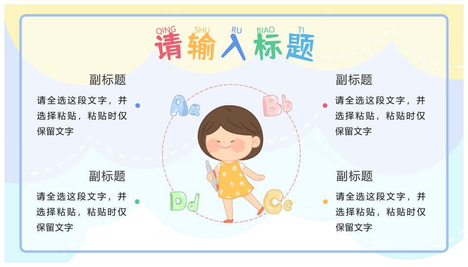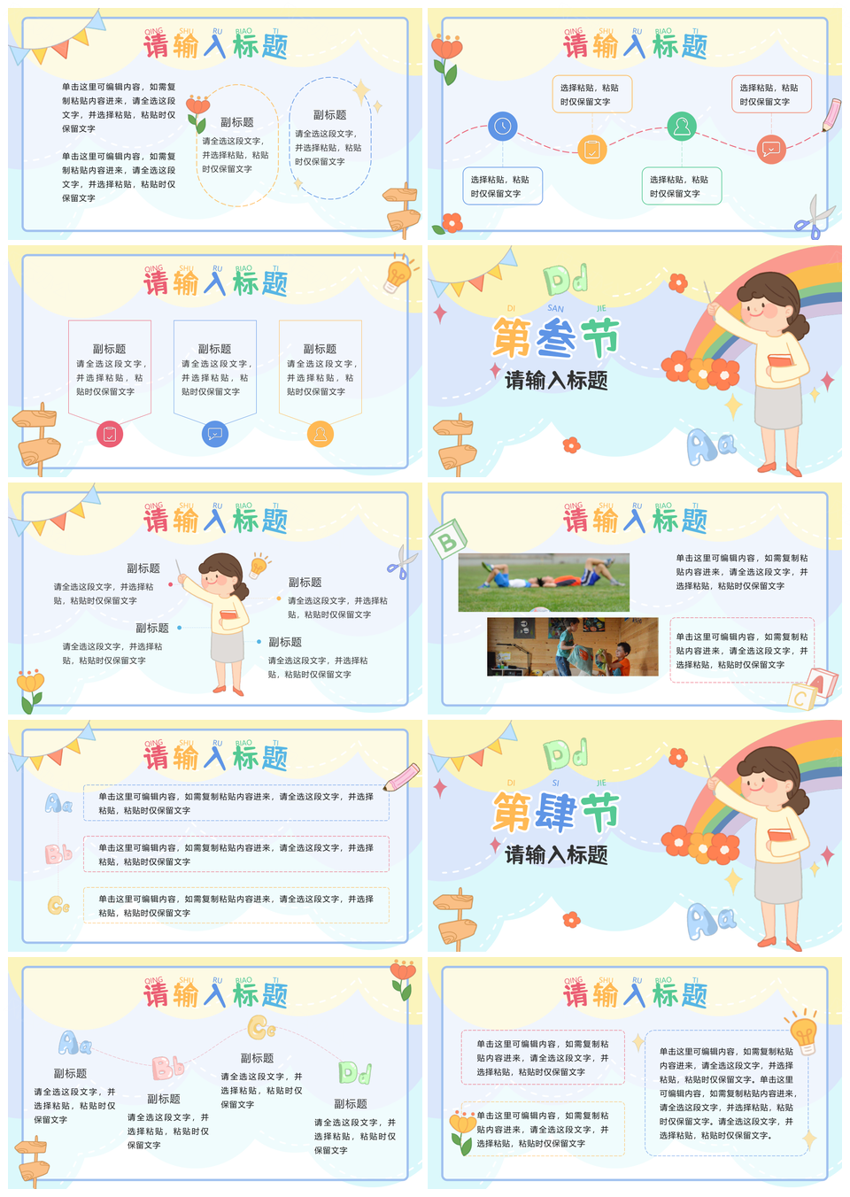 2025萌版小清新彩色可爱卡通幼儿教育自我介绍PPT模板