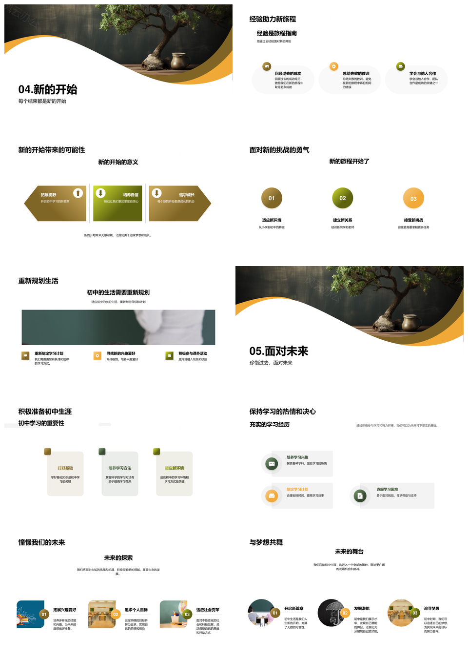 这是一张告别小学旧课桌迎接初中新挑战PPT模板,包含告别、小学、旧课桌、迎接、初中、新挑战等主题内容,也可用作告别小学迎接初中、告别小学旧课桌、迎接初中新挑战、告别小学、小学旧课桌、迎接初中、初中新挑战、告别旧课桌、迎接新挑战、小学初中、小学迎接初中、告别初中等PPT场景使用。 风云办公提供的告别小学旧课桌迎接初中新挑战PPT模板,下载格式为pptx,一共28页,作品中文字及图均可以修改和编辑,图片更改请在作品中右键图片并更换,文字修改请直接点击文字进行修改。