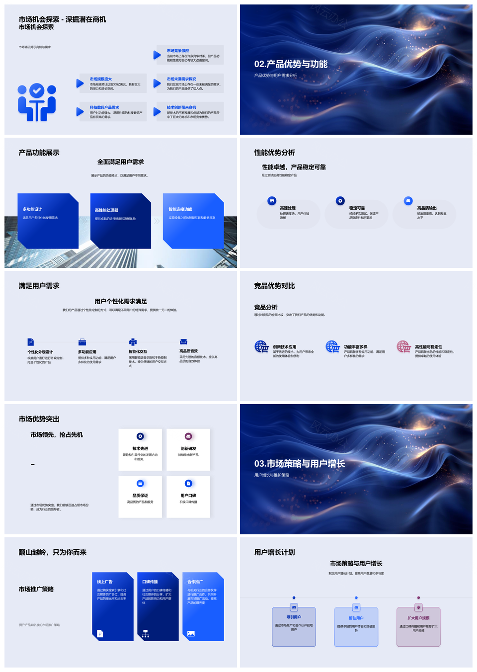 这是一张科技数码产品市场分析用户需求竞品优势商业模式计划PPT模板,包含科技、数码产品、市场、分析、用户、需求、竞品、优势、商业模式、计划等主题内容,也可用作科技数码产品市场分析用户需求、数码产品市场分析用户需求竞品优势、市场分析用户需求竞品优势商业模式、用户需求竞品优势商业模式计划、科技数码产品市场分析、数码产品市场分析用户需求、市场分析用户需求竞品优势、用户需求竞品优势商业模式、竞品优势商业模式计划、科技数码产品、数码产品市场分析、市场分析用户需求、用户需求竞品优势、竞品优势商业模式、商业模式计划等PPT场景使用。 风云办公提供的科技数码产品市场分析用户需求竞品优势商业模式计划PPT模板,下载格式为pptx,一共33页,作品中文字及图均可以修改和编辑,图片更改请在作品中右键图片并更换,文字修改请直接点击文字进行修改。