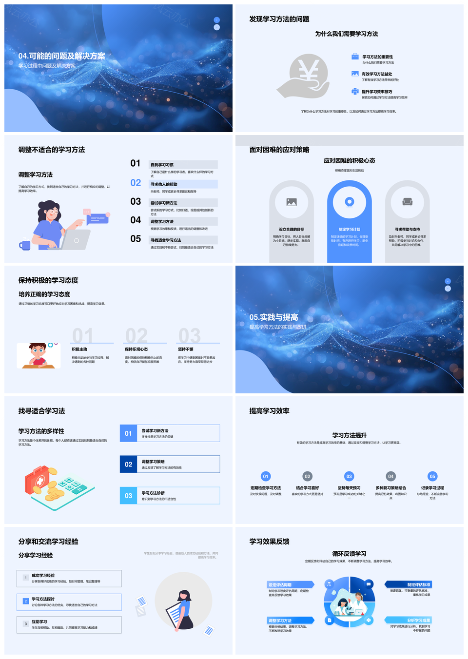 高效学习策略预习复习笔记图表习惯方法PPT模板推荐