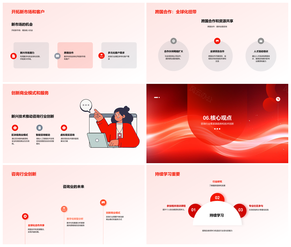 这是一张咨询行业趋势分析PPT模板,包含咨询、行业、趋势、分析等主题内容,也可用作咨询行业趋势分析、咨询行业趋势、咨询行业分析、行业趋势分析、咨询行业、行业趋势、趋势分析、行业分析、咨询趋势、咨询分析、咨询行业趋势分析咨询、行业趋势分析咨询、咨询趋势行业分析、行业咨询趋势分析、趋势咨询行业分析等PPT场景使用。 风云办公提供的咨询行业趋势分析PPT模板,下载格式为pptx,一共24页,作品中文字及图均可以修改和编辑,图片更改请在作品中右键图片并更换,文字修改请直接点击文字进行修改。
