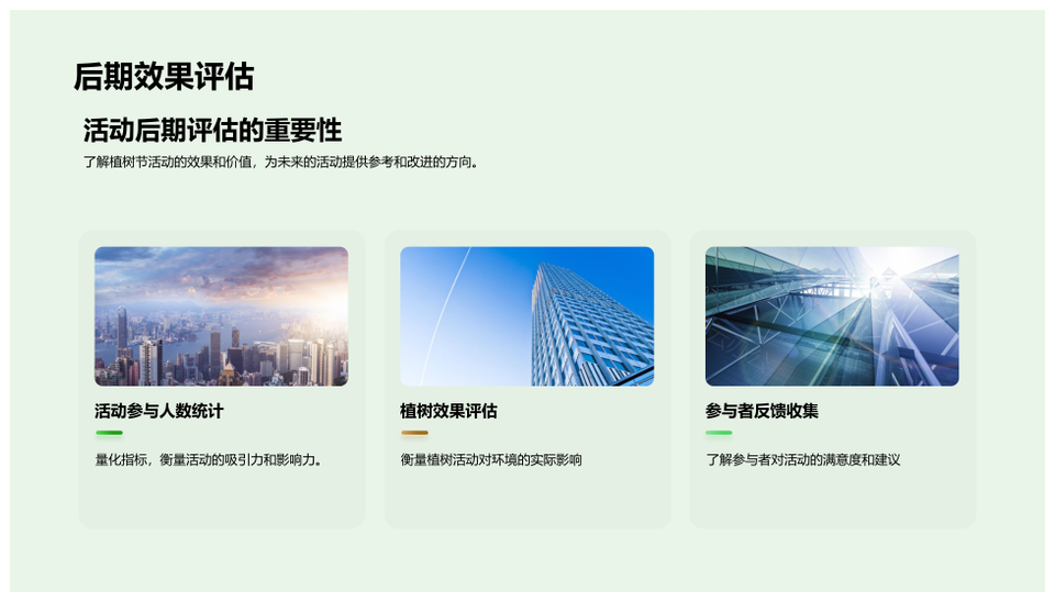 这是一张植树节活动策划实施案例树苗目标创新评估影响PPT模板,包含植树节、活动、策划、实施、案例、树苗、目标、创新、评估、影响等主题内容,也可用作植树节活动策划实施、活动策划实施案例、策划实施案例树苗、实施案例树苗目标、案例树苗目标创新、树苗目标创新评估、目标创新评估影响、植树节活动策划、活动策划实施、策划实施案例、实施案例树苗、案例树苗目标、树苗目标创新、目标创新评估、创新评估影响等PPT场景使用。 风云办公提供的植树节活动策划实施案例树苗目标创新评估影响PPT模板,下载格式为pptx,一共29页,作品中文字及图均可以修改和编辑,图片更改请在作品中右键图片并更换,文字修改请直接点击文字进行修改。