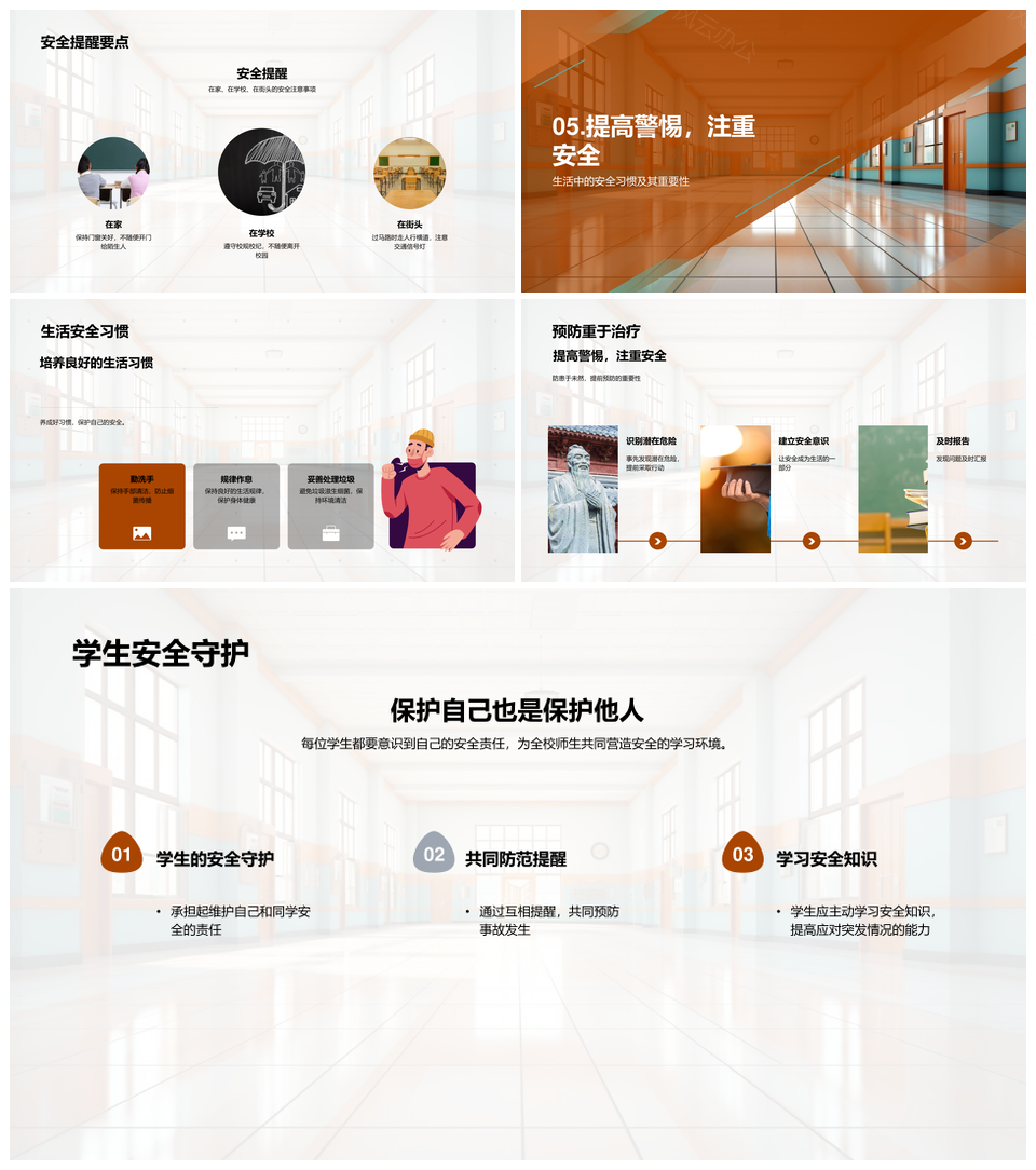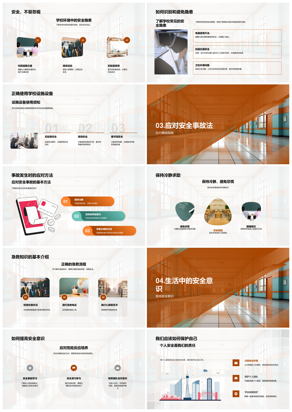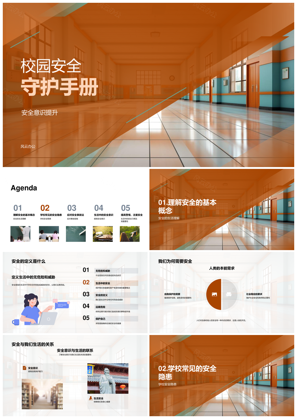 这是一张校园安全守护手册校楼安全定义安全意识提升PPT模板,包含校园、安全、守护、手册、校楼、定义、安全意识、提升等主题内容,也可用作校园安全守护手册、校楼安全定义提升、安全校楼守护手册、校楼安全守护手册、安全守护校园手册、守护手册校楼安全、校园安全守护、校楼安全定义、安全定义提升、校园安全、守护手册、校楼安全、安全定义、安全意识、安全提升等PPT场景使用。 风云办公提供的校园安全守护手册校楼安全定义安全意识提升PPT模板,下载格式为pptx,一共23页,作品中文字及图均可以修改和编辑,图片更改请在作品中右键图片并更换,文字修改请直接点击文字进行修改。