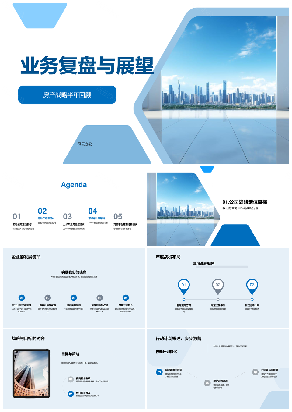 房地产CEO董事会业务复盘展望战略定位市场趋势PPT模板推荐