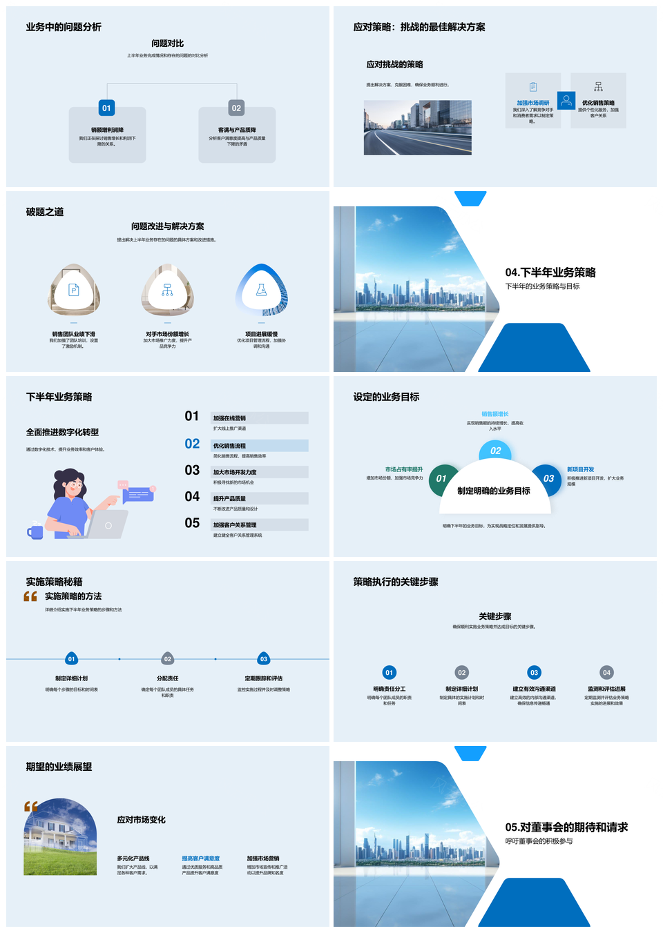 这是一张房地产CEO董事会业务复盘展望战略定位市场趋势PPT模板,包含房地产、CEO、董事会、业务、复盘、展望、战略定位、市场趋势等主题内容,也可用作房地产CEO董事会业务、房地产董事会业务复盘、房地产业务复盘展望、房地产复盘展望战略定位、房地产展望战略定位市场趋势、CEO董事会业务复盘、CEO业务复盘展望、董事会业务复盘展望、业务复盘展望战略定位、复盘展望战略定位市场趋势、房地产CEO董事会、房地产战略定位市场趋势、房地产董事会业务、董事会业务复盘展望、战略定位市场趋势等PPT场景使用。 风云办公提供的房地产CEO董事会业务复盘展望战略定位市场趋势PPT模板,下载格式为pptx,一共33页,作品中文字及图均可以修改和编辑,图片更改请在作品中右键图片并更换,文字修改请直接点击文字进行修改。