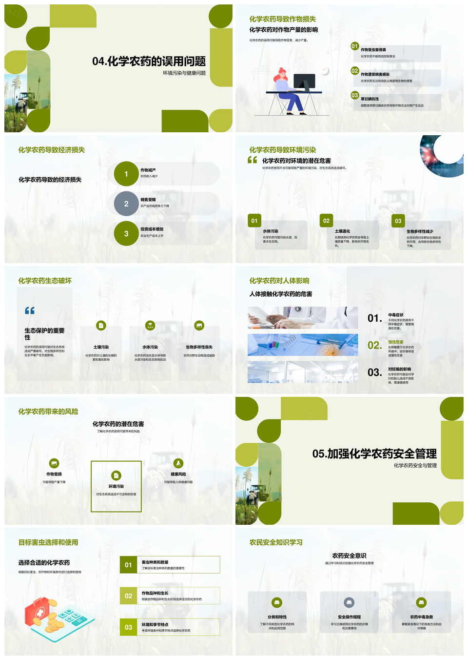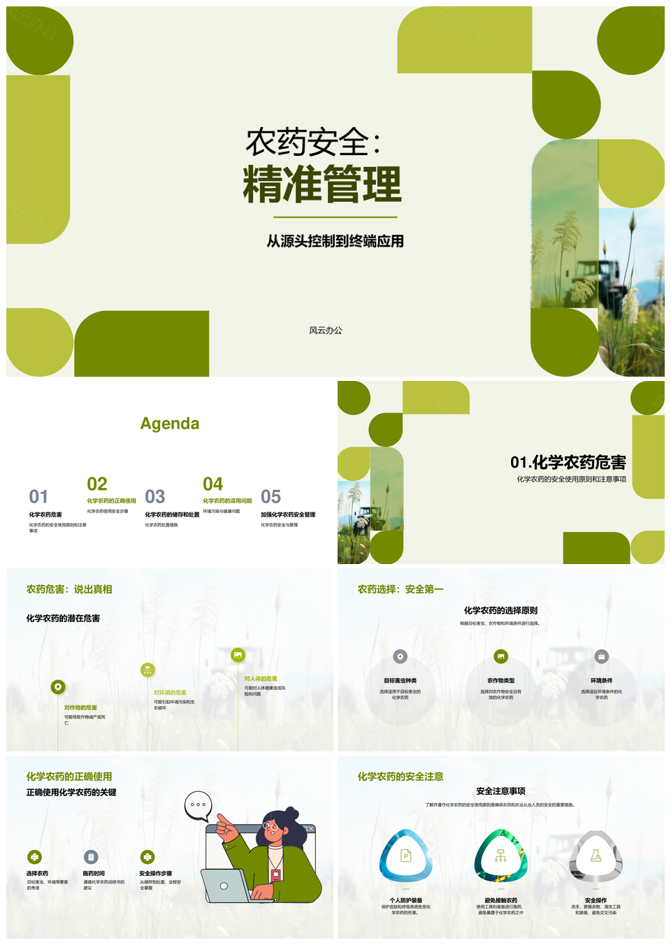 风云办公提供的化学农药安全使用精准管理护农保田PPT模板,下载格式为pptx,一共32页,作品中文字及图均可以修改和编辑,图片更改请在作品中右键图片并更换,文字修改请直接点击文字进行修改。