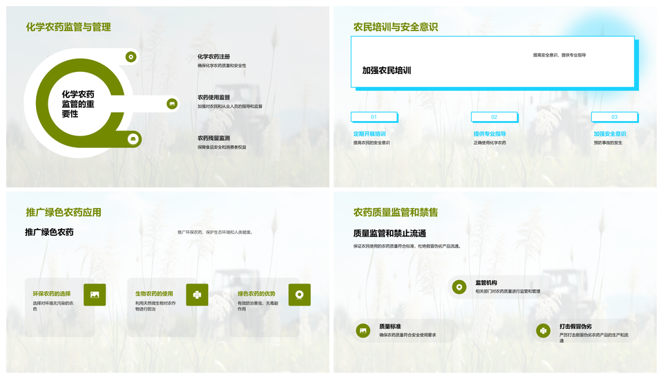这是一张化学农药安全使用精准管理护农保田PPT模板,包含化学农药、安全使用、精准管理、护农保田等主题内容,也可用作化学农药安全使用、安全使用精准管理、精准管理护农保田、农药安全使用精准、农药安全使用、安全使用精准、使用精准管理、精准管理护农、管理护农保田、化学农药安全、化学农药、农药安全、安全使用、精准管理、护农保田等PPT场景使用。