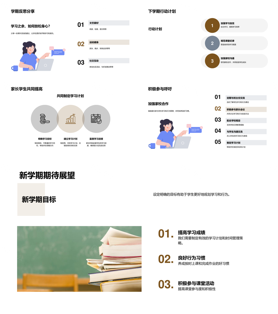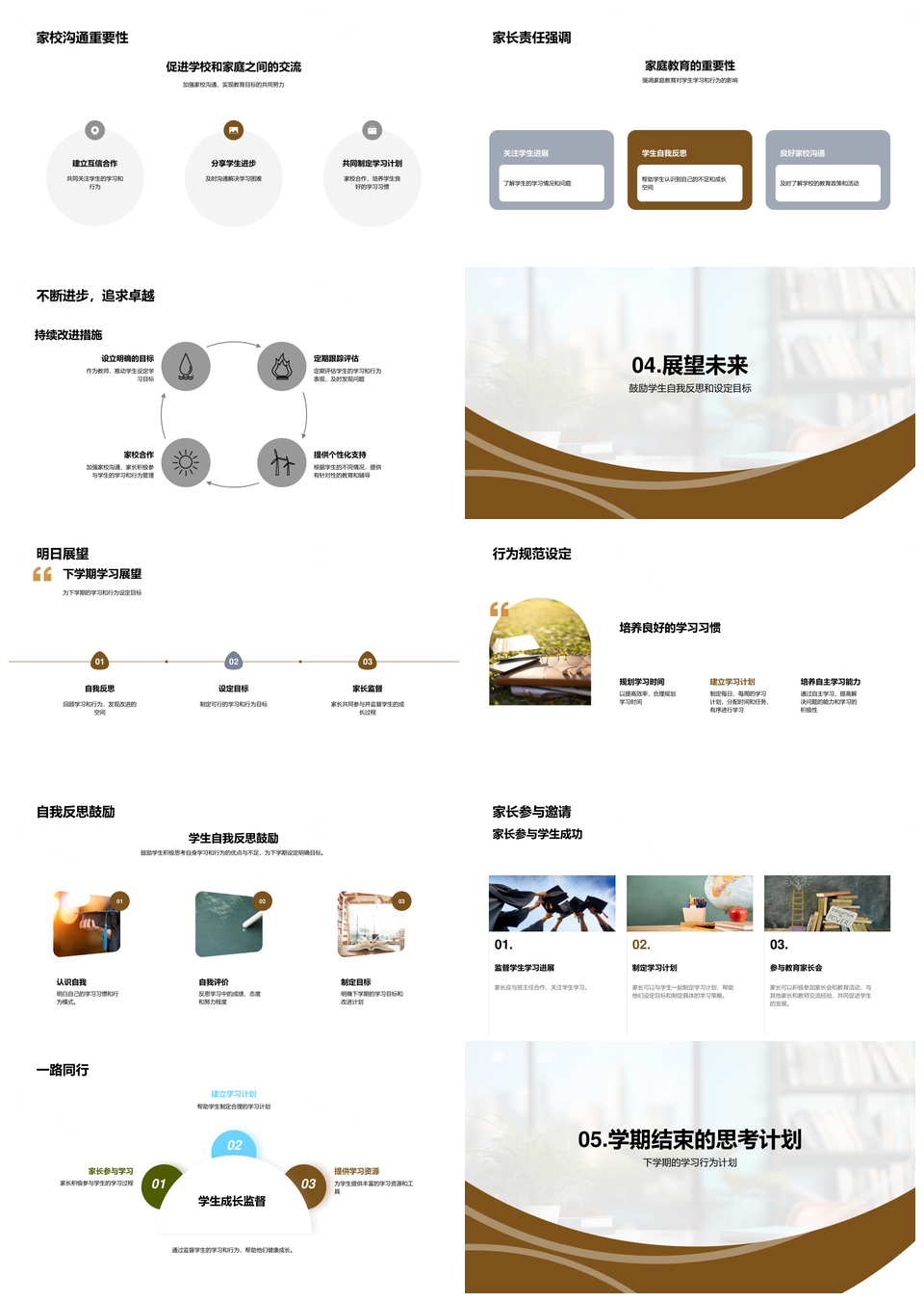 三年级学期复盘家校责任学习习惯成果效率展望PPT模板推荐
