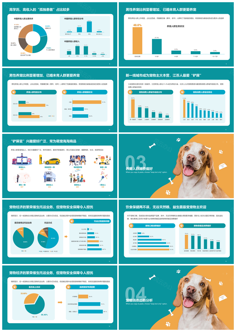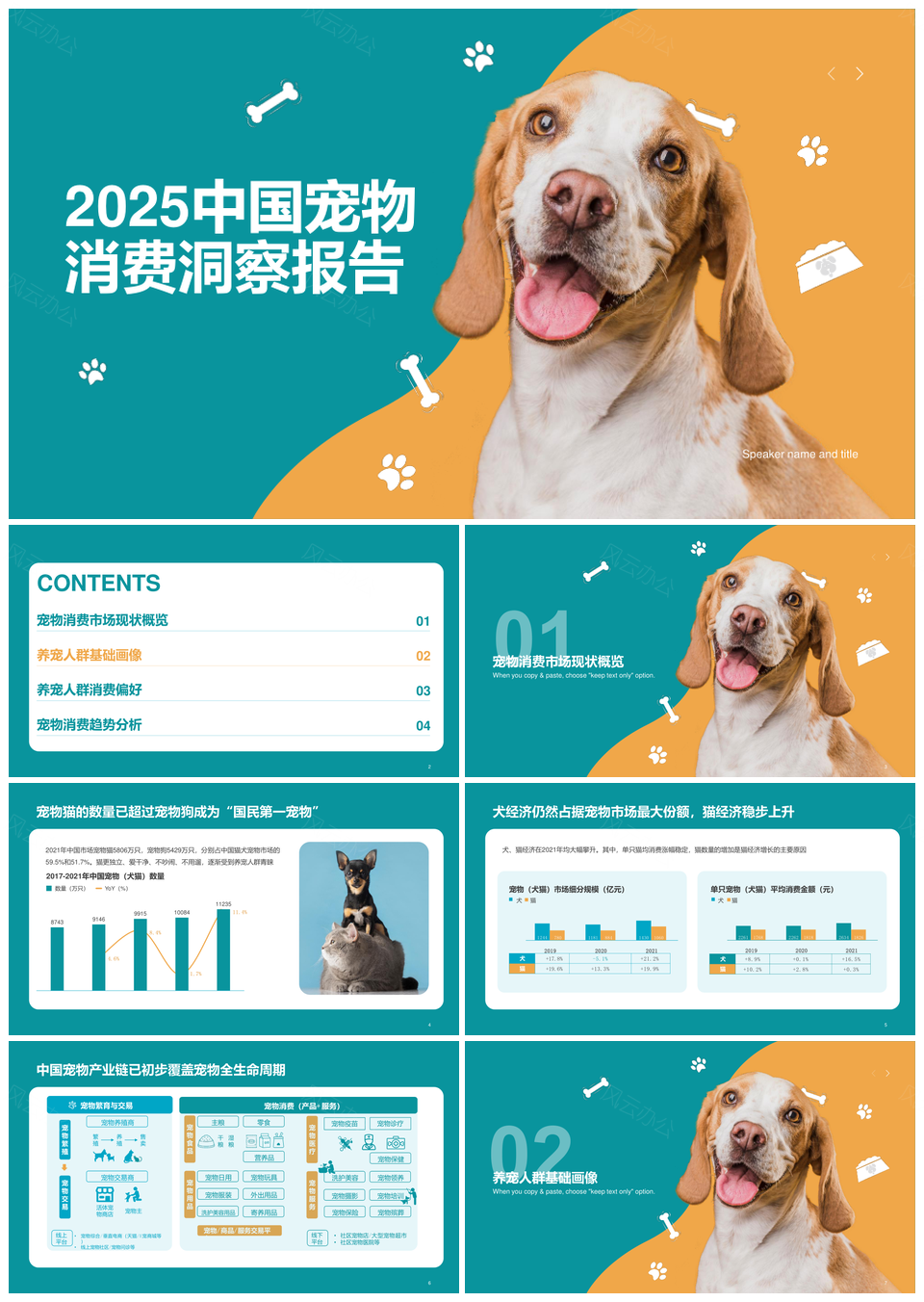2022中国宠物消费蓝黄行业洞察报告PPT模板