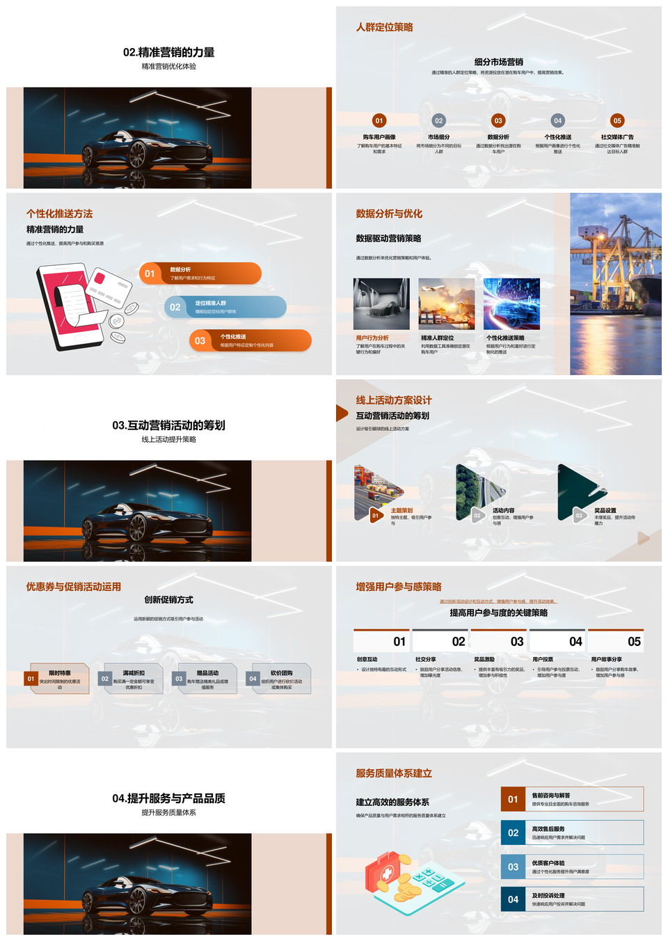 这是一张汽车电商双十一精准营销驱动电动汽车热销PPT模板,包含汽车、电商、双十一、精准营销、驱动、电动汽车、热销等主题内容,也可用作汽车电商双十一热销、电商双十一精准营销、双十一精准营销驱动、精准营销驱动电动汽车、双十一电动汽车热销、汽车电商双十一热销、电商双十一驱动热销、精准营销电动汽车热销、汽车电商精准营销、驱动电动汽车热销、双十一精准营销、精准营销驱动、汽车电商热销、电商双十一、电动汽车热销等PPT场景使用。 风云办公提供的汽车电商双十一精准营销驱动电动汽车热销PPT模板,下载格式为pptx,一共27页,作品中文字及图均可以修改和编辑,图片更改请在作品中右键图片并更换,文字修改请直接点击文字进行修改。