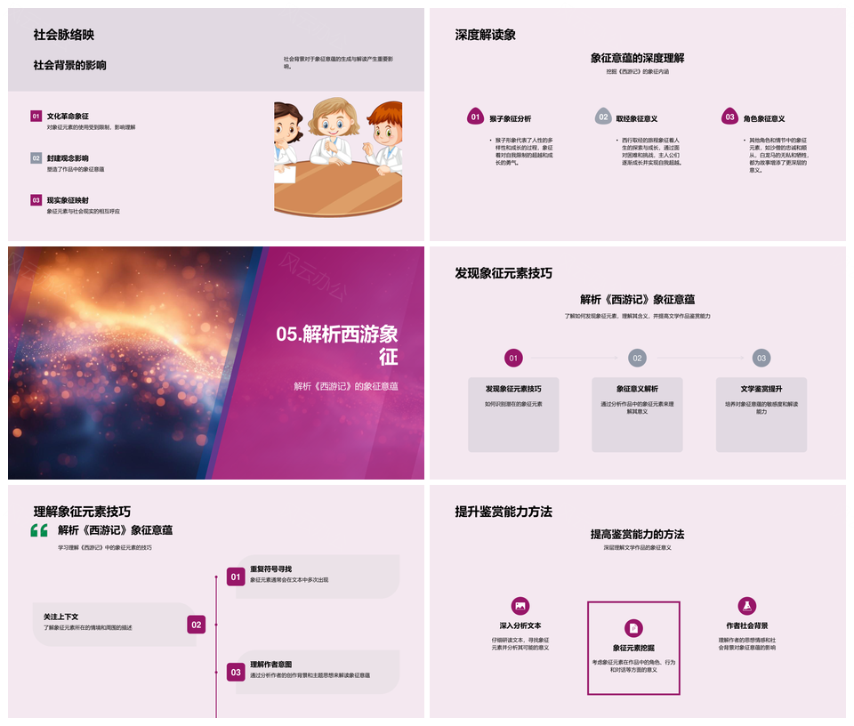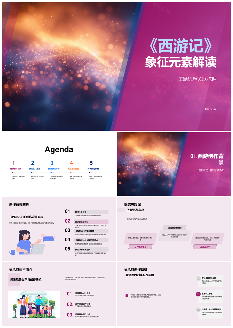 这是一张西游记象征元素主题思想与吴承恩创作背景PPT模板,包含西游记、象征元素、主题思想、吴承恩、创作背景等主题内容,也可用作西游记象征元素主题思想吴承恩、吴承恩西游记象征元素主题思想、西游记象征元素主题思想创作背景、吴承恩西游记创作背景主题思想、西游记象征元素主题思想、吴承恩西游记创作背景、象征元素主题思想创作背景、吴承恩主题思想创作背景、西游记创作背景主题思想、西游记象征元素、象征元素主题思想、吴承恩创作背景、西游记主题思想、主题思想创作背景、象征元素创作背景等PPT场景使用。 风云办公提供的西游记象征元素主题思想与吴承恩创作背景PPT模板,下载格式为pptx,一共24页,作品中文字及图均可以修改和编辑,图片更改请在作品中右键图片并更换,文字修改请直接点击文字进行修改。