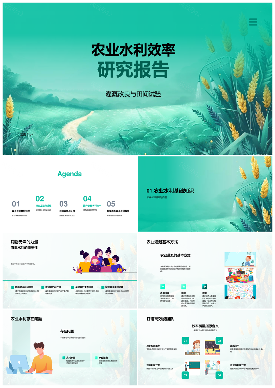 农业水利灌溉改良田间试验效率研究方法数据PPT模板推荐
