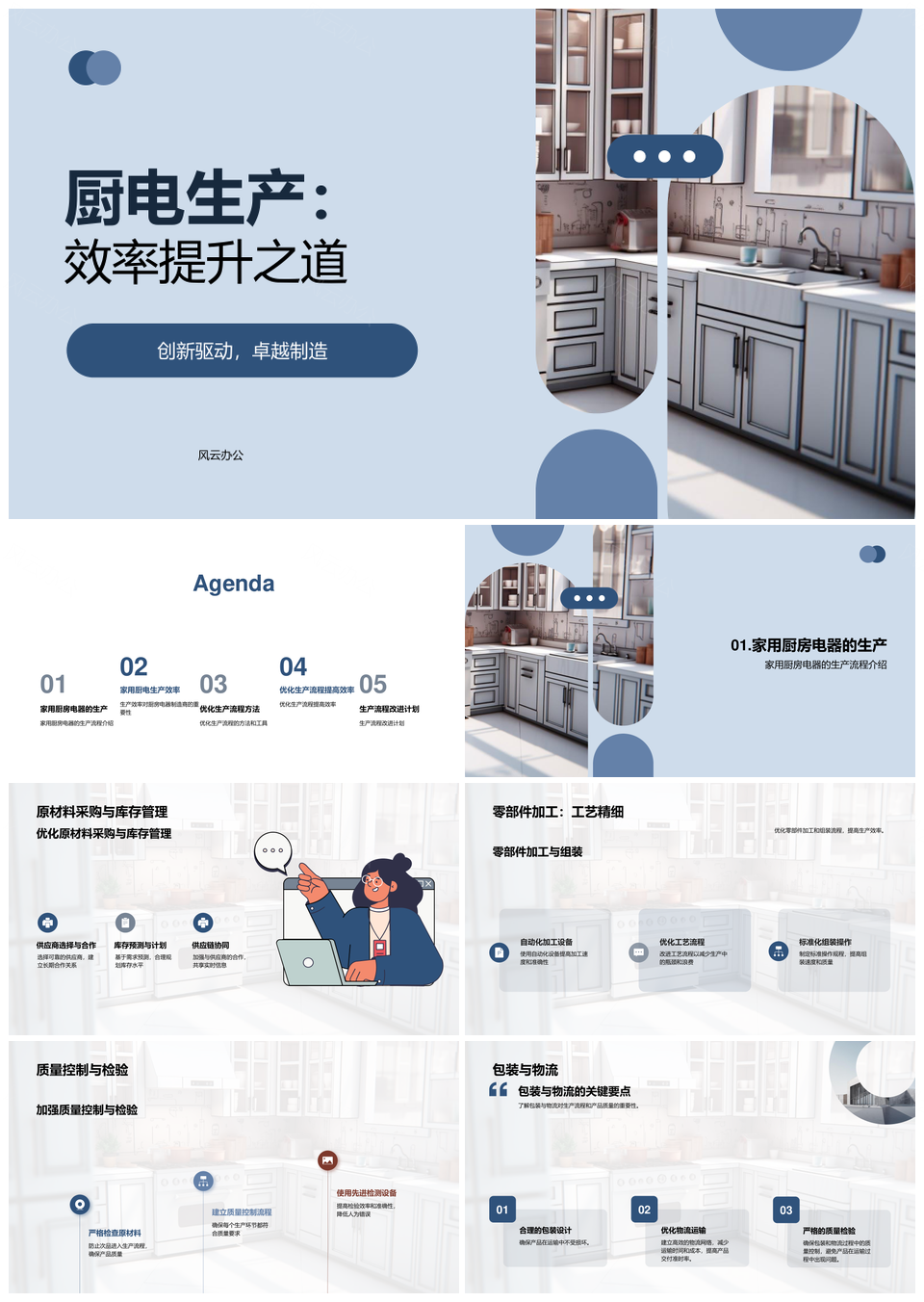 风云办公提供的厨房电器卓越生产流程优化质量控制PPT模板,下载格式为pptx,一共25页,作品中文字及图均可以修改和编辑,图片更改请在作品中右键图片并更换,文字修改请直接点击文字进行修改。