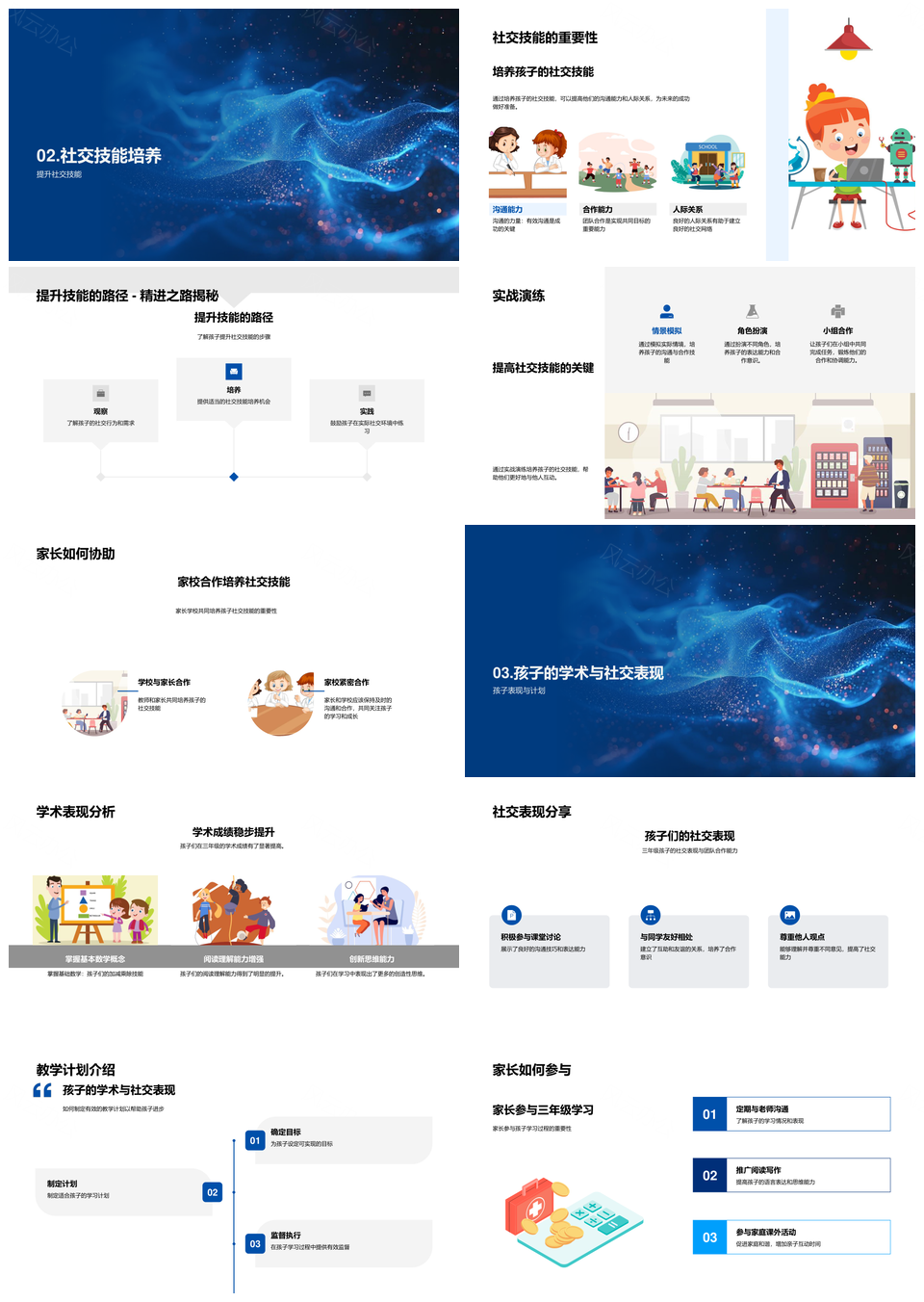 这是一张三年级教学社交技能家长参与家庭教育方法计划PPT模板,包含三年级、教学、社交技能、家长、参与、家庭教育、方法、计划等主题内容,也可用作三年级教学社交技能家长参与、教学社交技能家长参与家庭教育方法、三年级教学社交技能、教学社交技能家长参与、社交技能家长参与家庭教育方法、家长参与家庭教育方法计划、三年级教学、教学社交技能、社交技能家长参与、家长参与家庭教育方法、家庭教育方法计划、三年级家长参与、家长参与计划、教学计划、家庭教育方法家长参与等PPT场景使用。 风云办公提供的三年级教学社交技能家长参与家庭教育方法计划PPT模板,下载格式为pptx,一共28页,作品中文字及图均可以修改和编辑,图片更改请在作品中右键图片并更换,文字修改请直接点击文字进行修改。