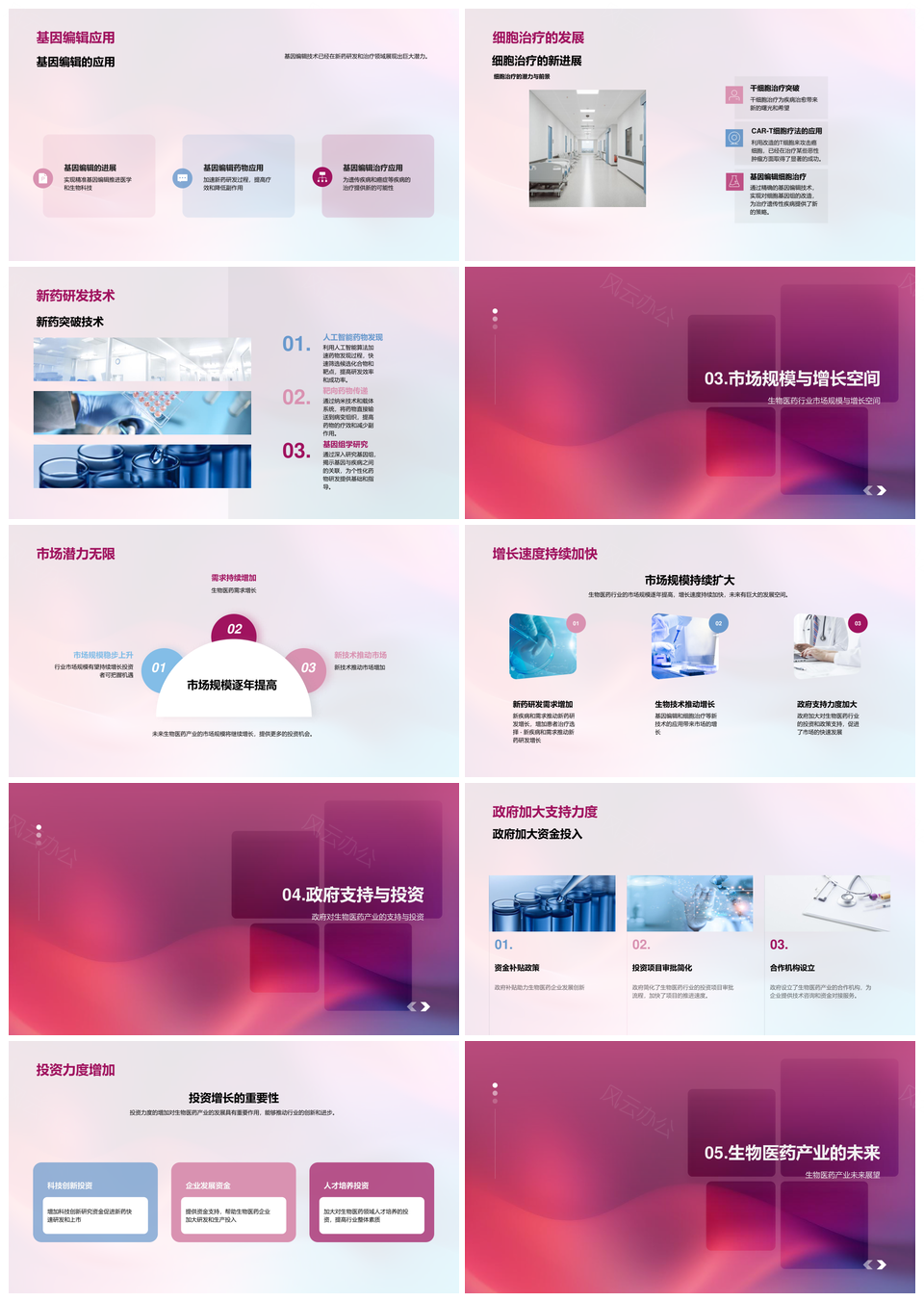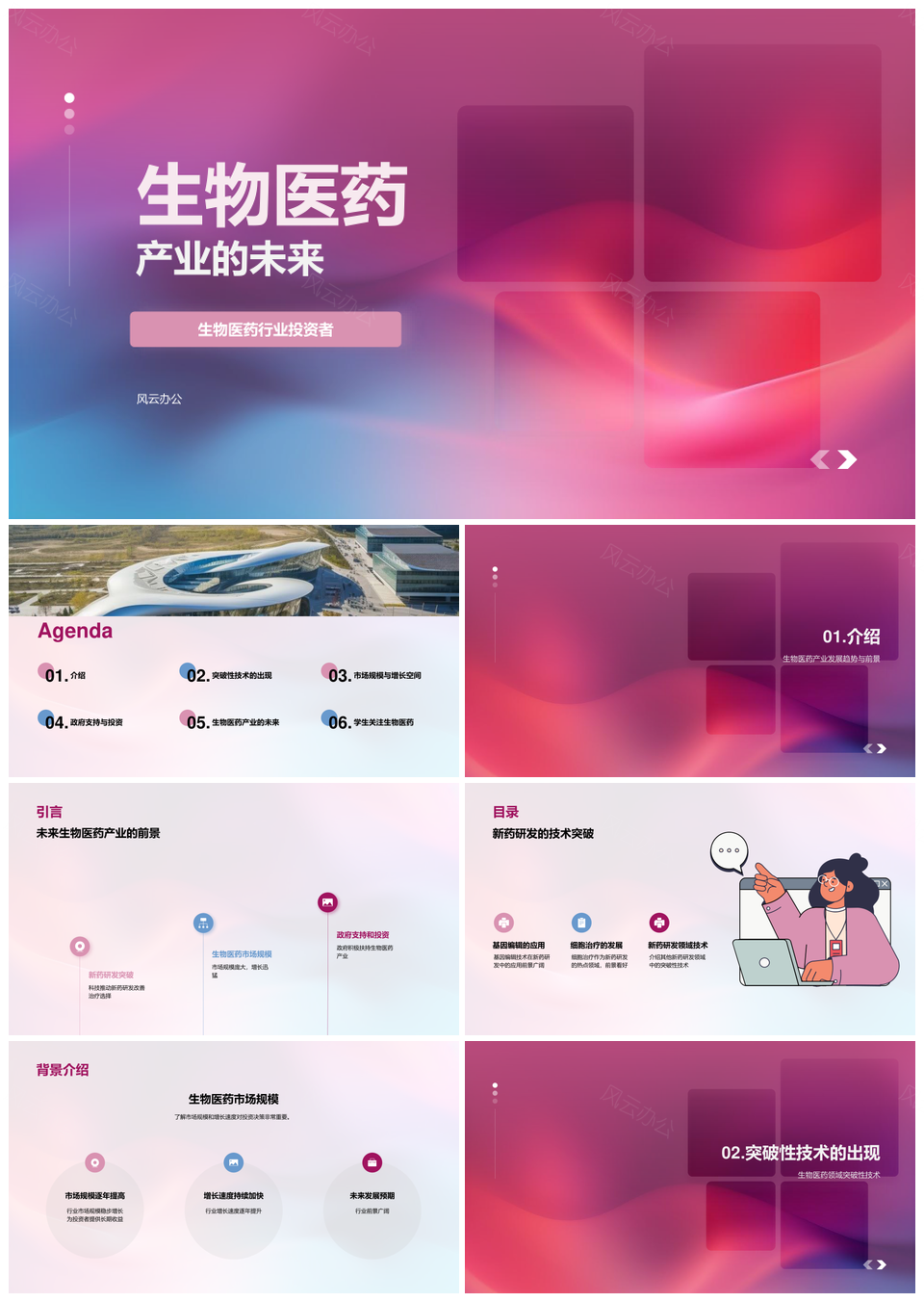 风云办公提供的生物医药产业未来发展趋势PPT模板,下载格式为pptx,一共21页,作品中文字及图均可以修改和编辑,图片更改请在作品中右键图片并更换,文字修改请直接点击文字进行修改。
