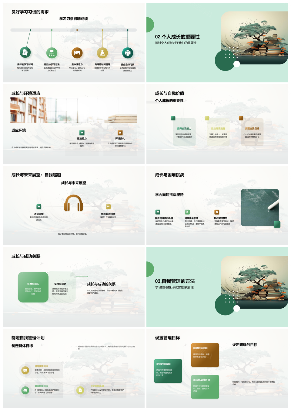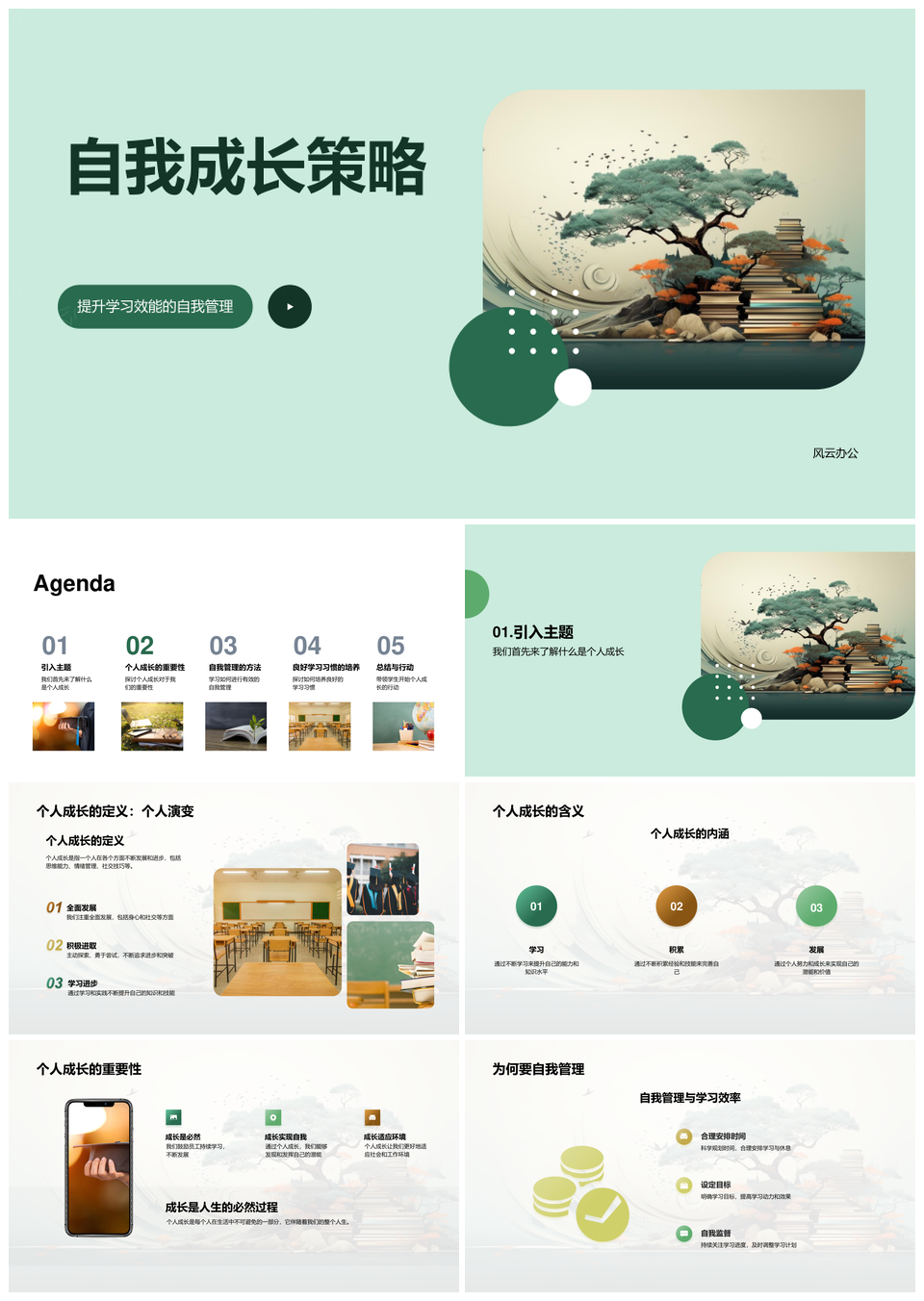 这是一张高效学习自我管理促个人成长PPT模板,包含高效学习、自我管理、个人成长等主题内容,也可用作高效学习自我管理、高效学习管理、学习自我管理、管理个人成长、高效自我管理、高效学习成长、高效学习、自我管理、个人成长、高效管理、学习管理、自我成长、管理成长、学习成长、高效成长等PPT场景使用。 风云办公提供的高效学习自我管理促个人成长PPT模板,下载格式为pptx,一共33页,作品中文字及图均可以修改和编辑,图片更改请在作品中右键图片并更换,文字修改请直接点击文字进行修改。