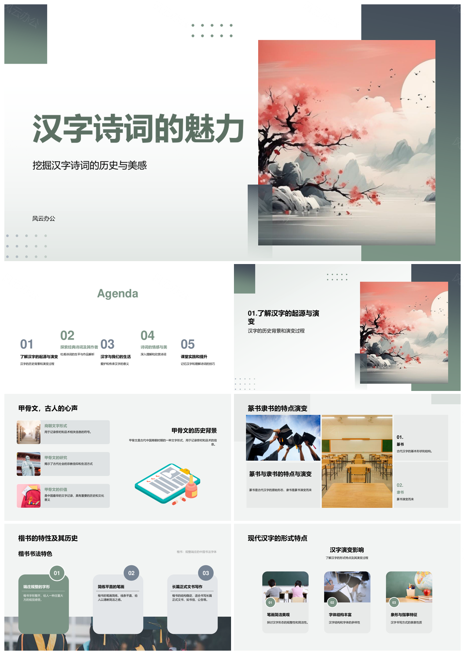 风云办公提供的汉字诗词甲骨篆隶楷演变杜甫书法美韵PPT模板,下载格式为pptx,一共28页,作品中文字及图均可以修改和编辑,图片更改请在作品中右键图片并更换,文字修改请直接点击文字进行修改。