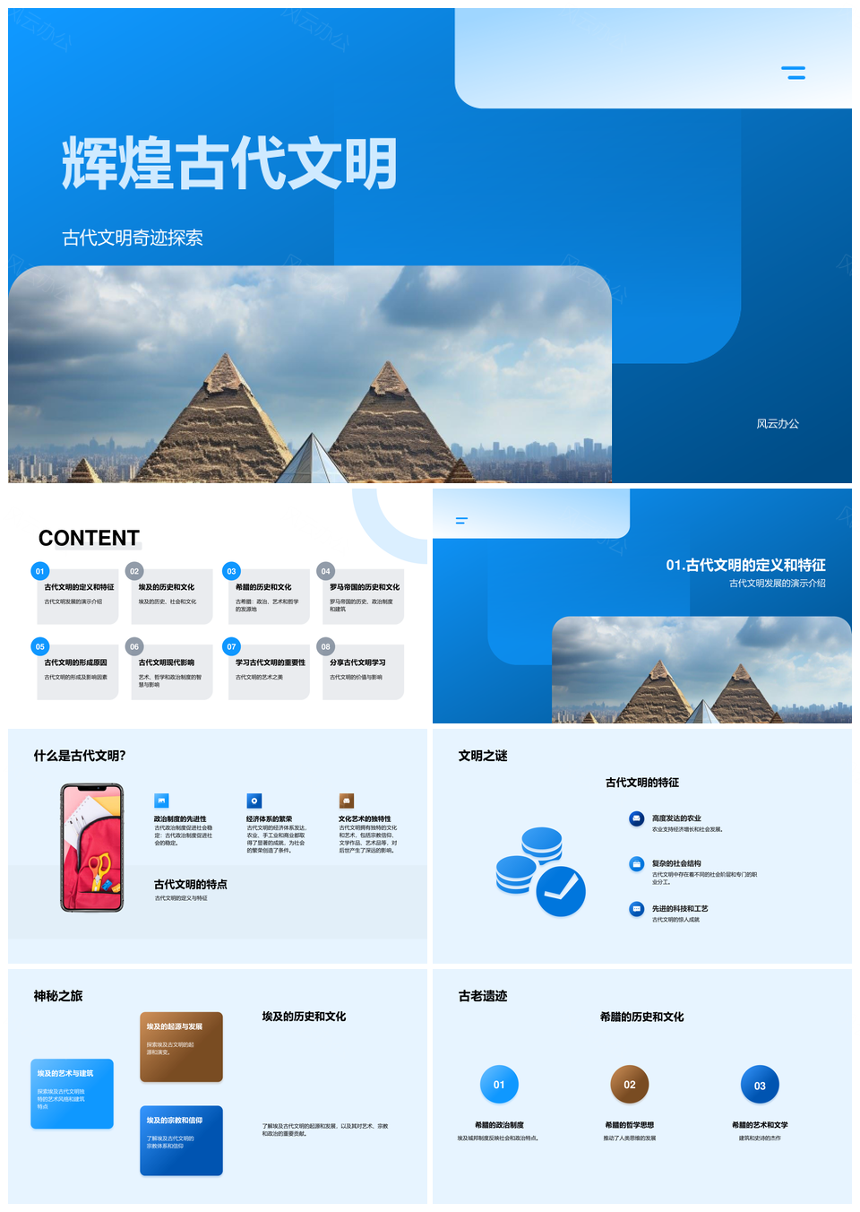 古埃及希腊罗马科技哲艺法文明辉迹PPT模板