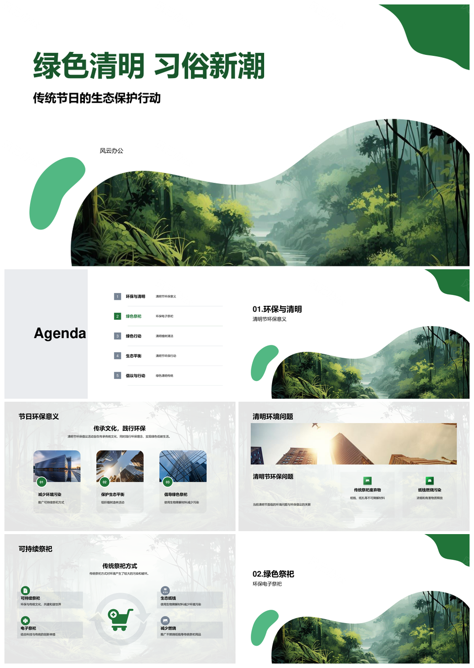 风云办公提供的绿色清明环保新俗植竹降解在线祭PPT模板,下载格式为pptx,一共23页,作品中文字及图均可以修改和编辑,图片更改请在作品中右键图片并更换,文字修改请直接点击文字进行修改。