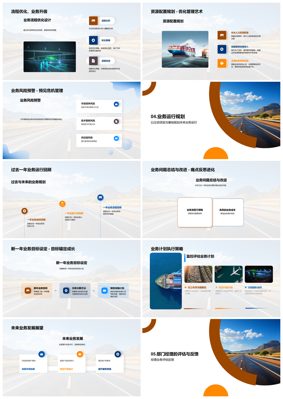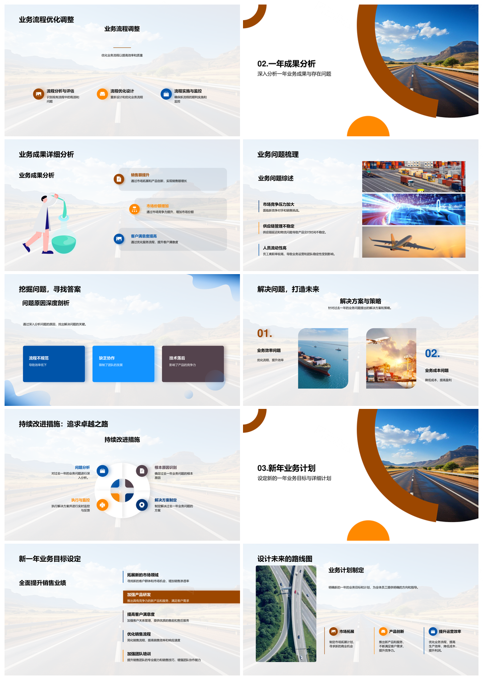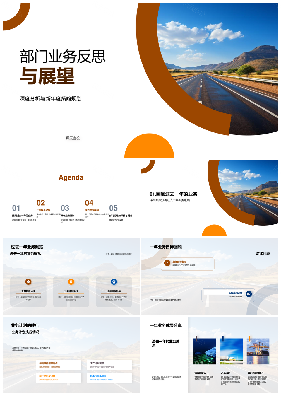 风云办公提供的高速公路部门业务年度反思与策略展望PPT模板,下载格式为pptx,一共33页,作品中文字及图均可以修改和编辑,图片更改请在作品中右键图片并更换,文字修改请直接点击文字进行修改。