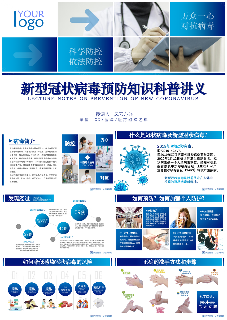 新型冠状病毒预防知识科普讲义PPT模板推荐