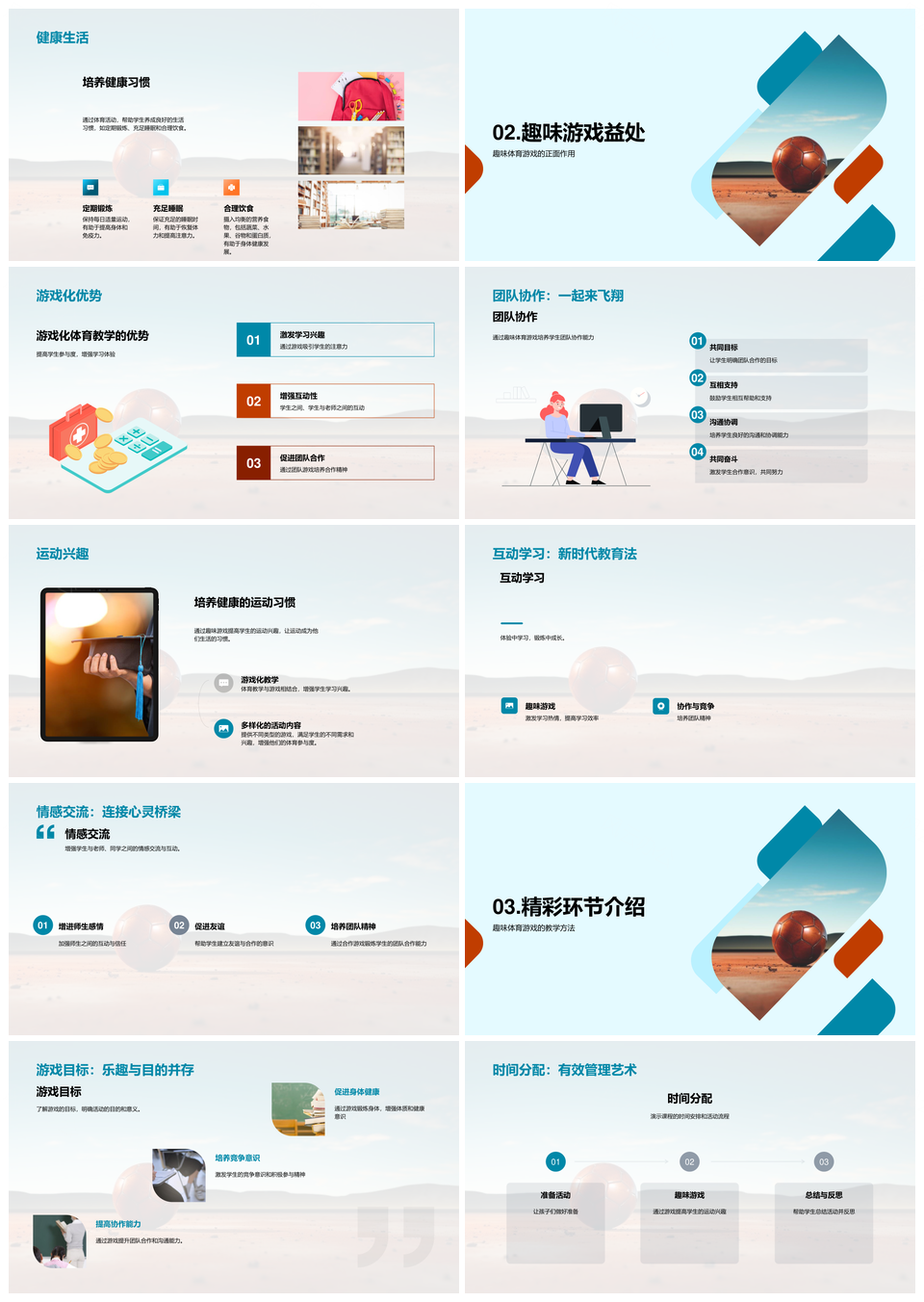 这是一张趣味足球游戏体育课助儿童协作身心发展PPT模板,包含趣味、足球游戏、体育课、儿童、协作、身心发展等主题内容,也可用作趣味足球游戏体育课、足球游戏体育课儿童、游戏体育课儿童协作、体育课儿童协作身心、儿童协作身心发展、趣味足球游戏、足球游戏体育课、游戏体育课儿童、体育课儿童协作、儿童协作身心、协作身心发展、趣味足球、足球游戏、游戏体育课、体育课儿童等PPT场景使用。 风云办公提供的趣味足球游戏体育课助儿童协作身心发展PPT模板,下载格式为pptx,一共33页,作品中文字及图均可以修改和编辑,图片更改请在作品中右键图片并更换,文字修改请直接点击文字进行修改。