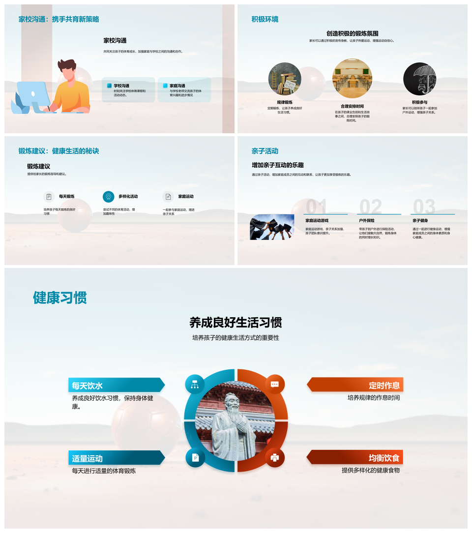 幼儿园体育课程家校共育促身心发展PPT模板