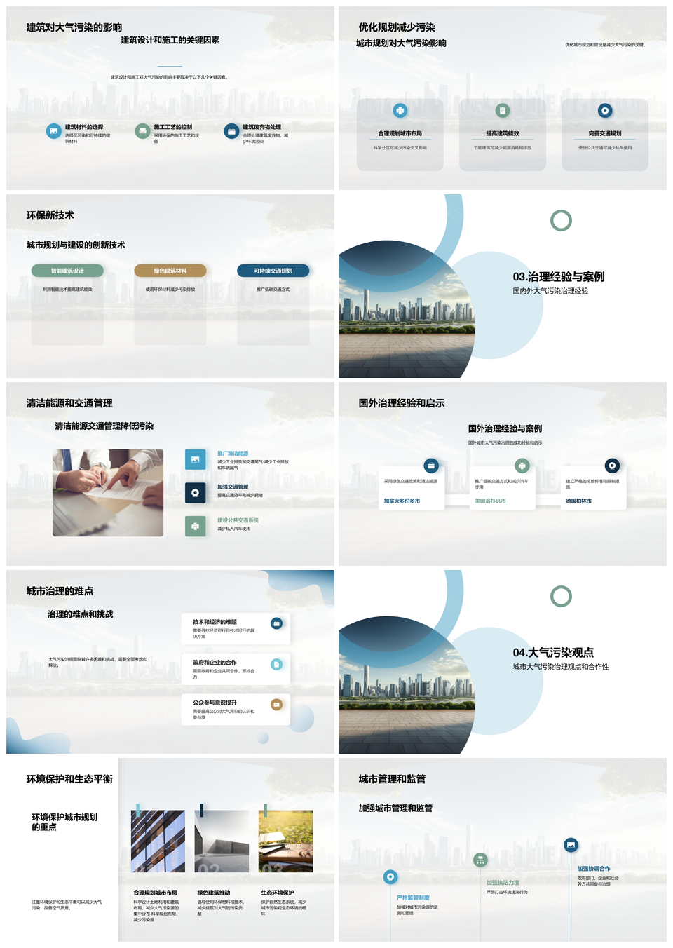 这是一张城市大气污染治理规划师管理者共治方案PPT模板,包含城市、大气污染治理、规划师、管理者、共治方案等主题内容,也可用作城市大气污染治理、大气污染治理规划师、污染治理规划师管理者、规划师管理者共治方案、城市大气污染、大气污染治理、污染治理规划师、治理规划师管理者、规划师管理者共治、管理者共治方案、城市污染治理、大气污染规划师、城市大气、大气污染、污染治理等PPT场景使用。 风云办公提供的城市大气污染治理规划师管理者共治方案PPT模板,下载格式为pptx,一共23页,作品中文字及图均可以修改和编辑,图片更改请在作品中右键图片并更换,文字修改请直接点击文字进行修改。