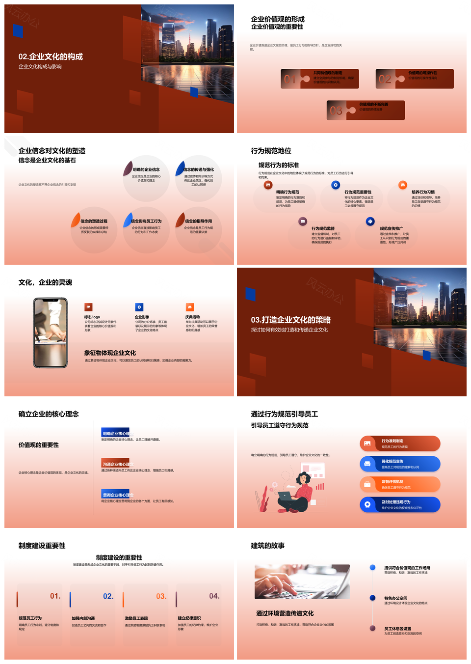 风云办公提供的企业文化价值观引领员工行为助发展PPT模板,下载格式为pptx,一共26页,作品中文字及图均可以修改和编辑,图片更改请在作品中右键图片并更换,文字修改请直接点击文字进行修改。