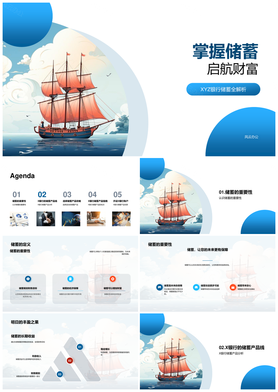 XYZ银行储蓄产品助您财富长期收益启航PPT模板推荐
