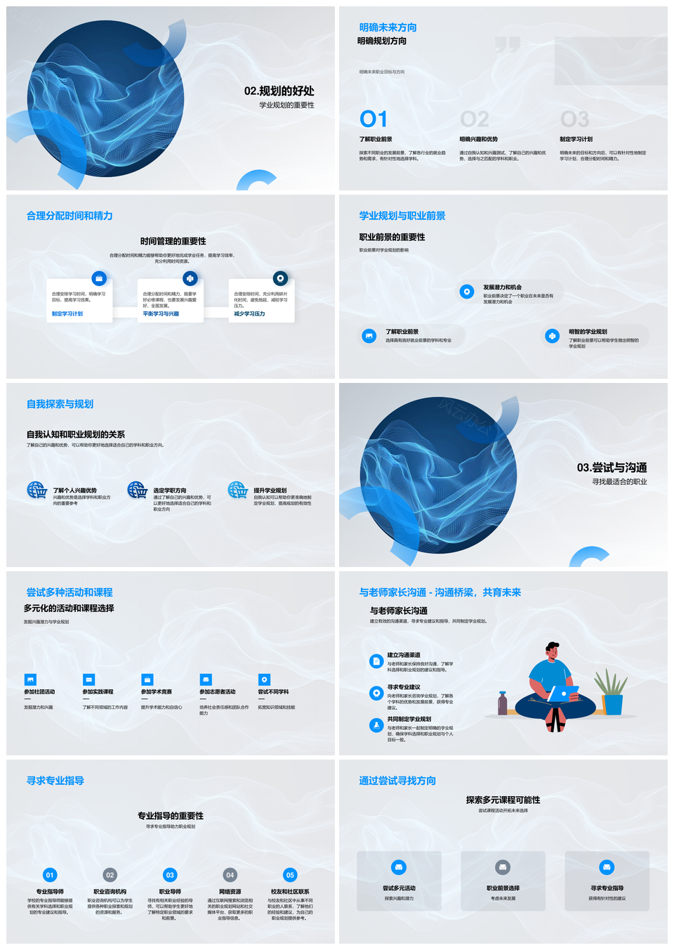 这是一张高一学业规划学科职业沟通师家策略指导PPT模板,包含高一、学业规划、学科、职业、沟通师、家策略、指导等主题内容,也可用作高一学业规划指导、学业规划学科策略、学科职业沟通策略、职业沟通策略指导、高一学业规划、学业规划指导、学科职业沟通、职业沟通策略、沟通策略指导、高一学科职业、学业职业策略、规划策略指导、学科策略指导、高一学业、学业规划等PPT场景使用。 风云办公提供的高一学业规划学科职业沟通师家策略指导PPT模板,下载格式为pptx,一共28页,作品中文字及图均可以修改和编辑,图片更改请在作品中右键图片并更换,文字修改请直接点击文字进行修改。