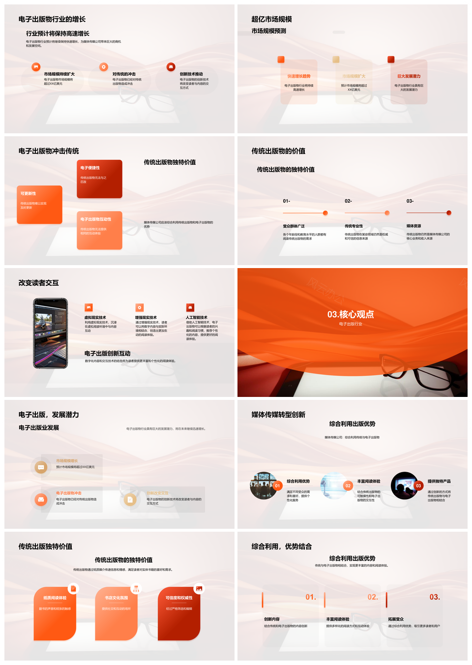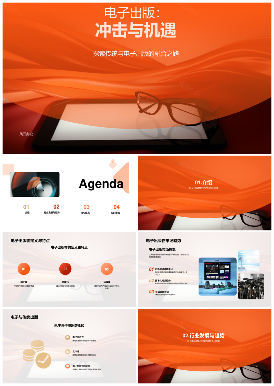 风云办公提供的电子书冲击传统出版市场增长创新机遇PPT模板,下载格式为pptx,一共25页,作品中文字及图均可以修改和编辑,图片更改请在作品中右键图片并更换,文字修改请直接点击文字进行修改。