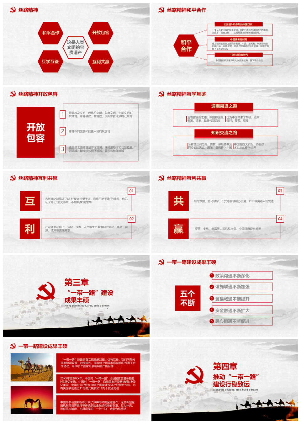 这是一张一带一路丝路国际合作跨文化交流经济PPT模板,包含一带一路、丝路、国际合作、跨文化、交流、经济等主题内容,也可用作一带一路、丝路、国际、合作、跨文化、交流、经济